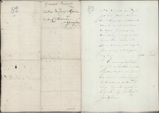 Generaale Procuratie van 83 N. 4. Une partie praevies grand Den Heere Nannung de Greve 82 sept hond, situice en Oudeland Den Heere Cr. Heereman dans le Weyteint en Zand Ambaert, in d.o 6 Januarij 1809. Attenant annor d et à l'ouest Un arpent soixante quinze toises de terre, compreises dans le même bloc, évaluée à la Somme de deur cent cinquante florins on cinq cent vingt et ƒ 250. fr. 525. cinq francs. Et avons experts soussignes à l'égard de la susdite évaluation et fication du prix, pris pour lase la valeur intrenseque, et les circonstances du tems, et redigé le present rapport en conformité. Ligné J. Loopuit Jan Dykmans. v. 13 No 31