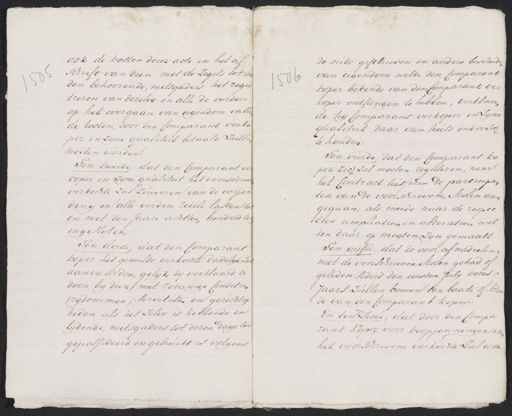 ook de kosten dezer acte en het af schrift van dien met de Zegels tot be¬ den behoorende, mitsgaders het regis¬ „treren van dezelve en alle de verdere op het overgaan van eigendom vallen de kosten door den Comparant verko¬ per in zyne qualiteit betaald zullen moeten worden. Ten tweede, dat den Comparant ver koper in zyne qualiteit het voorschreven verkochte zal zuiveren van de verpon ding en alle verdere reeele lasten tot en met den Jaare achttien honderd te ingesloten Ten derde, dat den Comparant koper het gemelde verkochte dadelyk zal aanvaarden, gelijk hij verklaard te doen bij deeze, met zodanige Conditien vrydommen, servituten en gerechtig¬ heden als het zelve is hebbende en lydende, mitsgaders tot dezen dage toe gepossideerd en gebruikt is volgens de oude gifthieven en andere bescheiden van eigendom welke den Comparant l6 koper bekende van den Comparant ver koper ontfangen te hebben, verklaren de hij Comparant verkoper in zyne qualiteit daar van niets onder zich te houden. Ten vierde dat den Comparant ko per zich zal moeten reguleren, naar het Contract tusschen de participan ten van de voorschrevene Molen aan gegaan, als meede naar de respec twé ampuatien en alteratien wel ken daar op mogten zyn gemaakt Ten vijfde, dat de voor af nadeelen met de voorschrevene Molen gehad of geleden sederd den eersten Julij dezes Jaars zullen komen ten baate of scheu de van den Comparant koper: En ten Zesae, dat door den Compa zant Koper voor kooppenningen van het voorschrevene verkochte Zal won