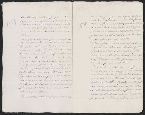Ten Tweede, dat den Comparant ver koper het voorschreven verkochte zal zuiveren van de verponding en alle verdere reeele lasten tot en met den Jaare achttien honderd tien inge sloten Ten derde dat den Comparant ko per het gemelde verkochte voor zyne Compagnieschap dadelijk zal aan vaarden, gelijk hij verklaard te doen bij deeze, met zodanige Conditien, vrij dommen, servituten en gerechtig heden als het zelve is hebbende en lijdende, mitsgaders tot dezen dage toe gepossi deerd en gebruikt is volgens de oude giftbrieven en andere bescheiden van eigendom welke den Comparant koper bekende van den Comparant verkoper ontfangen te hebben, verklaarende hij Comparant verkoper daar van niets onder zich te houden. Ten vierde, dat de Compagnieschap van den Comparant koper zich zal moeten reguleren, naar het Con= tract tusschen de participanten van f 30 de voorschrevenen Molen aangegaan als meede naar de respective am pliatien en alteratien welken daar op mogten zijn gemaakt. Ten vijfde, dat de voor of nadeelen met de voorschrevene Molen gehad of geleden, sederd den eersten Julij dezes Jaars, zullen komen ten baa te of schaade van de Compagnieschap van den Comparant koper. En ten zesden, dat door den Compa„ rant koper voor kooppenningen van het voorschrevene verkochte Zal wor den betaald een summa van dertig Guldens Hollandsch geld; welke gel den den Comparant verkoper beken de uit handen van den Comparant koper in klinkende zilvere munt ont fangen te hebben; quiterende mits