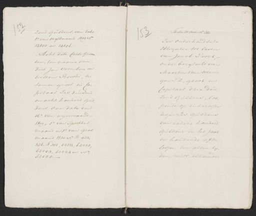 Zend guldens, van dato 1e. van Oogstmaand 1809 No. 14805 en 14ip6. Acht dito Certificae¬ ten, ten naame van Dirk Jan coomberg en Willem Borstii te samen groot in ca. pitaal Zes duizend en acht honderd Gul¬ deus van dato den 16e. van wijnmaand 1809, 1e. van Sprokkel. maand en 1e. van Gras maand 1810 No. B. 922, 326, P 238, 55214, 62552, 62553, 62554 en No¬ 62555. Folio 25 verso N. 42 153 Een onderhandsche Obligatie tot lasten van Jacob Poort onder borgtocht van Maarten van Wierin gew P.Z., groot in Capitaal drie den¬ Zend Guldens, loo¬ pende op interessen tegen zes guldens van iedere honderd Guldens in het Jaar en houdende afte¬ lossen ten allen tij den mits elkande¬