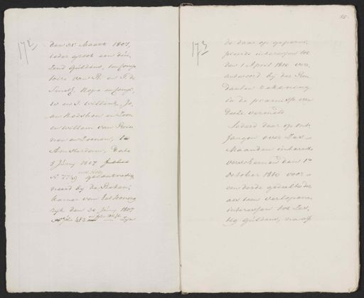 den 31e. Maart 1807 72 ieder groot een duiZend Guldens, ten Compsoire van R. en G. de Smeth, Hope en Compr. W. en I. Willink, Joau hodshon en zoon en Willem van Brienen en zoonen, te Amsterdam, dato 8 Juny 1807 folio en 8e. 16189 N 7749 gecontrasigneerd bij de Rekenkamer van het koningrijk den 30 Juny 1807 en folio 1012 verso zijn No folio 485 85 de daar op gepereipieerde intezessen tot Den 1 April 1810 verantwoord bij der Rendanten rekening in de præmisse van Deeze vermeld Sederd daar op ontfangen over zes Maanden interest verscheenen den 1e October 1810 voor een derde gedeelte der als toen verlopene interessen tot zes tig guldens, na af