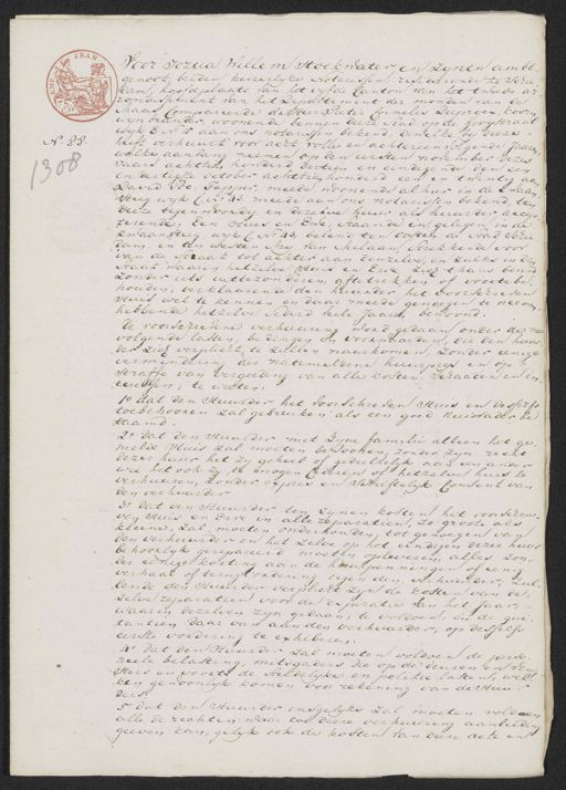 Voor Jozua Willem Hoekwater en zynen ambt¬ genoot, beiden keizerlyke Notarissen, resideerende te schie„ dam, hoofdplaats van het vyfde Canton van he tweede ar„ rondissement van het Departement der monden van de Maas Compareerde de Heer Pieter Cornelis Diepryex, koorn wijnbrander, woonende binnen deeze Stad op de gooystraat wyk E N.o 15 aan ons notarissen bekend, dewelke by deeze No. 88. heeft verhuurt voor acht volle en achtereenvolgende Jaaren welke aanvang neemen op den eersten november dezes Jaars achttien honderd dertien en eindigende den een 308 en dertigste october achttien honderd een en twintig aan David Poo, Tapper, meede woonende alhier in de Zwaan steeg wijk C N. 43. meede aan ons notarissen bekend, ten deeze tegenwoordig en dezelve huur als huusder accep¬ terende, Een Huis en Erve, staande en gelegen in de zwaansteeg, wyk C N.o 43, belend ten oosten de stad Schie dam, en ten westen Arij van Melaan, Strekkende voor van de Straat tot achter aan denzelve, en zulks in den Staat waarin hetzelve Huis en Erve zich thans bevind zonder iets uittezonderen, aftetrekken of voortebe¬ houden, verklaarende den huurder het voorschreven Huis wel te kennen en daar meede genoegen te neemen, hebbende hetzelve Sederd veele Jaaren bewoond. de voorschrevene verhuuring word gedaan onder de na volgende lasten, bedingen en voorwaarden, die den huur der zich verplicht te zullen naarkomen, zonder eenige vermindering der natemeldene huurprijs en op straffe van vergoeding van alle kosten, schaaden en in teressen, te weeten. 1.o dat den Huurder het voorschreven Huis en desselfs toebehooren zal gebruiken als een goed huisvader be taamd. 2.o dat den Huurder met zyne familie alleen het ge¬ melde Huis zal moeten bewoonen, zonder zyn recht dezer huur het zy geheel of gedeeltelyk aan een ander wie het ook zy, te mogen cederen of hetzelve huis te verhuuren, zonder expres en schriftelyk Consent van den verhuurder 3.o dat den Huurder ten zynen kosten het voorschree¬ ven Huis en Erve in alle reparatien, zo groote als kleine, zal moeten onderhouden, tot genoegen van den verhuurder en het zelve op het eindigen dezer huur behoorlyk gerepareerd moeten opleveren, alles zon¬ der eenige korting aan de huurpenningen of eenig verhaal of terugvordering tegen den verhuurder; zul¬ lende den Huurder verplicht zyn de kosten van de¬ zelve reparatien voor de expiratie van het Jaar, waarin dezelven zyn gedaan, te voldoen, en de qui¬ tantien daar van aan den verhuurder, op desselfs eerste vordering te exhiberen. 4o dat den Huurder zal moeten voldoen de perso¬ neele belasting, mitsgaders die op de deuren en vene sters en voorts de steedelyke en politie lasten, wel¬ ken gewoonlyk komen voor rekening van de stuur ders 5. dat den Huurder insgelyks zal moeten voldoen alle de rechten waar toe deeze verhuuring aanleiding geeven kan, gelyk ook de kosten van deeze acte en