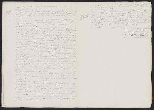 elles sont faites et d'en montrer les quitances au bailleur à sa premiere requisition 4.o Duc le procureur dedra acquitter les impositions personnel„ les comme aussi celle des portes et croisées et en outre les charges de ville et de police dont les locataires sont ordinairement tenus 5 due le preneur devra aussi acquiter tous les droits, aux quels bepresent bail pourra faire onverture, ainsi que le cont des pre„ sentes et de la grosse qui en sera delidée au bailleur En outre les charges clauses et conditions ci-dessus exprimées, le present bail est fait moyennant la somme de huit cent joixante treize francs et soixante centimes (quatre cent serze Horins) la quelle somme le preneur s'oblige de payer au bail, cens en sa demeure ou au porteur de la grosse des presentes et presentes dans tout leur contenu obligeant à cet effet tous leurs biens presents et adenir, renoncant à toute chose con„ travie a ces presentes Fait et passé à Schiedam, en l'étude du dit Notaire Hoek„ water le trente octobre milhuit cent treize au soir, et ont les Comparants avec les Notaires Signé, après lecture 1312 faite la presente minute, la quelle est restée en la garde et possession du dit Notaire Hoekwater (signé) T C Diaprycq David Zoo, Jw Hoekwater not Imper.l, J.b Gagestein wei„ deux mots rajes zerl. Notaris. Tour traduction Conforme Le traducteur Jure J. van Alphen A de ses pouvoirs, chaque quatre semaines avec huit francs qua rante centimes (quatre florins) dont les quatre premieres se„ maines seront echnes le dingt neuf novembre milhuit cent tresze les secondes Quatre semaines le dingt sept decembre de la même année et ainsi de suite de quatre en quatre se„ maines jusqu'à la fin du present bail, les quels payemens de„ dront être faites en monnaie metallique, au titre et cours de ce jour et non en papier monnaie, effets publics ou autres billicts de quelque nature que ce soit ou par quelqne autorité ils sont introduits on pourroient être introduits à l'ademir; de„ clare le preneur y renoncer expressement: Et en cas que le prineur demeure en defaut de faire les susdits payemens aux tems ce-dessus fixes ou de satisfaire a une ou a plusieurs con„ ditions ci-dessus fixés le present bail sera datord resilia, si bon semble au baillens et autrement pas, ou le preneur sera contraint au payement des loyers et à l'execution de ses Obli gations par tous moyens de droit C'est ainsi que le tout a été condemn et arreté entre les parties, que pour l'execution des presentes ont een domicile en leurs demeures susdesignées, aux quels lieux ils consen„ tent la validité de tous actes et exploits de justice relatif à ces presentes qui y seraient signifiés, et ce non obstant tous changement de demeures que les dites parties pourroient faire par la suite, promettant d'executer fidelement les