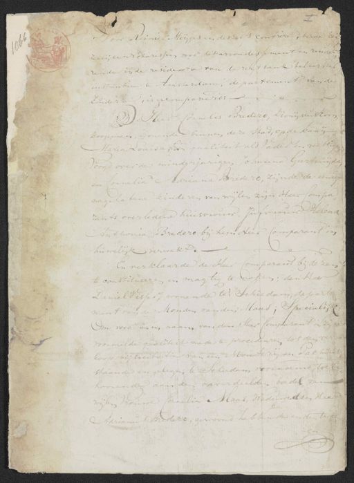 Voor Reinier Meijjes en deszelfs Confrere, beide kei- zerlijke Notarissen voor het arrondissement en residee rende in de residentie van de regtbank ter eerster instantie te Amsterdam, departement van de Zuiderze, is gecompareerd: De Heer Cornelis Bredero, Dionijsiuszoon, koopman, wonende binnen deze stad, op de kaaij- Maria Louisa, Po in qualiteit als Vader en wettigen Voogd over de minderjarigen Johanna Geertruijda, en Cornelia Adriana Bredero, zijnde de eenige nagelatene kinderen van wijlen zijn Heer Compa rants overledene huisvrouw, Jufvrouwe Helena Anthonia Bredero bij hem Heer Comparant in e Een „ huwelijk verwekt. En verklaarde de Heer Comparant bij dezen te constitueeren en magtig te maken; den Heer Daniel Visser, wonende te Schiedam, de parte ment van de Monden van den Maas; Specialijk Den voor en in naam van den Heer Comparant in zijne voormelde qualiteit mede te procedeeren tot den ver koop bij licitatie van een Mouterij en Pakhuis, staande en gelegen te Schiedam voornoemd, toebe hoorende aan den opverdeelden boedel van wijlen Vrouwe Cornelia Maas, Weduwe den Heer Adrianus Bredero, gewoond hebbende en den twee