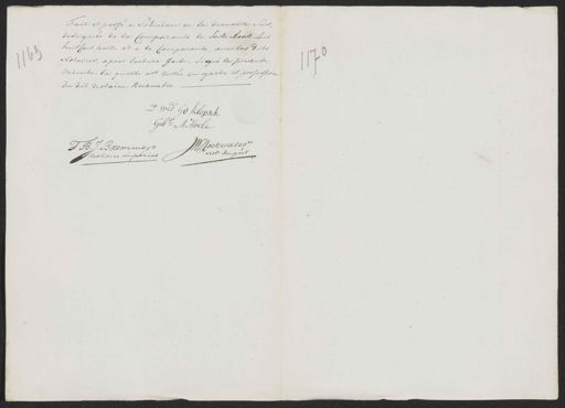 Fait et passé a Schiedam en la demeure sus Resignée de la Comparante le Seize Aout Mil puitcent treize et a la Comparante, avec les dits Notaires, apres lecture faite, signé la presente minute, la quelle est restée en garde et possession die dit notaire hoekwater Dl. wede. Gv Klopsch Gebr. A Hoele Hoekwater F. B. J. Bremmer Nots. Impert. notaire impérial