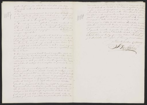 quatre dingt un par devant les echedens de cette ville La presente dente est faite sous lesclanses et conditivus sui„ vantes 1.o due les acquereurs payeront tous les frais et droits aux quels cette vente pourra faire onderture et qui sont ordi„ 1187 nairement à la charge de l'acquéreur comme aussi les frais du present acte de transport et l'expedition. 2.o Que les acquereurs acceptent la susdite maison et he„ ritage pour ce qui concerne le troisieme part qu'il a ache„ te dans l'état ou elle se trouve actuellement et qu'ils se mettront dabord dans sa possession, comme ils declarent taire par ces presentes. 3.o due les acquereurs supporteront toutes les servitude passives apparentes on occultes dont la sustite maison et her&age puisse être grêde sauf à l'acquereur à s'en defen„ dre comme ils auront aussi le droit de faire valoir à leur profit les serditudes actives le tout à leurs risques perils ou fortunes et sans aucun recours ni repetition con„ tre le vendeur. 4.o dus les acquereurs seront tenus d'acquitter pour ce qui concerne le troisieme part qu'ils ont acheté, toutes les contributions foncieres et autres charges de quelque nature que ce soit qui sont on seront imposes sur la sus„ dite maison et servitage et ce à compter du premier de ce mois. donnoile en leurs demeures susdesignées, aux quels lieux ils consentent la validité de tous actes et exploits de justi„ ce qui y seraient signifiés et ce non obstant tous chan¬ gemens de demeures dans la suite. Promettant d' execu„ ter fidelement les presentes en tout leur Contenu obli„ geant à cet effet tous leurs biens presents et à venir 480 renonçant à toute chose contraire à ces presentes. Fait et passé en l'ettide du dit Notaire Hoekwater le onze septembre milhuit cent treize de reledée et ont tous les Comparants avec les notaires signé après lecture faite la presente minute la quelle est restée en la garde et possession du Notaire Hoekwater susdit (signé) Jan Feteris, Thomas Verwey, Jannetje Peteris, P. Peteris J: W: Hoekwater Not: in per!, S:r Penning Junior Notaris Pour traduction Conforme P. Van Alphen. 5.o Duc les acquereurs payezont pour prix de vente du troisiemepart dans la susdite maison et heritage qui est vendu par ces presentes une somme de (cent dingt six francs), soixante florins, la quelle somme le Comparant vendeur declare advir reçue des Comparants acquereurs et de les quiter et decharger a ce sujet sans aucune reserde. Cedant le Comparant vendeur au profit des Comparants acquereurs leurs heritiers ou ayants cause tout droit ac„ tion et reclame que le vendeur a en sur la dite maison et her&tage le tout sous promesse de garantie suivant la loi C'est ainsi que le tout a été condemn et arrêté entre les parties, qui pour l'execution des presentes font élection de