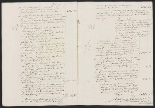 Transpt 4:o De Kontante penningen, ter somma van zes duizend vier honderd vier en 6434-07. dertig Gulden zeven Cents, dus 5e. Nog behoren tot de Baten de navol. gende Openstaande Noekschulden, voort= spruitende uit de vroeger bij de overledene geexerceerde Metzelaars affaire, ten lasten de volgende als: 98 Anthonij Hulusman, de som van drie hon derd negen en twintig Gulden Willem Kerssen, de som van Een Honderd dertien gulden vyf en vyftig Cents. Jan Dekker, de som van Eenhonderd tien Gulden vyf en tachtig Cents. Dirk Gunneweg, de som van twee hon derd drie en dertig Gulden negentig Cents. Quirinus van der Gaag, de som van Vier en Zeventig gulden vyf en negentig Cents, Jan van Jeveren, de som van Zes en dertig gulden Vijftig Cents. Reinier Steens, de som van twintig Gulden een en Zeventig Cents. - En de Erven Jacob Weber, de som van Vyftig Gulden tien Cents. Alle welke Boek schulden onder de Erfgenamen in het gemeen en on verdeeld zullen blyven, het geen alhier Memorie word gebragt voor. Bedragende alle de hierboven gespecifi ceerde en uitgetrocken Baten te zamen en zynde mitsdien deelbaar de som¬ van Negen duizend twee honderd dertig Gulden twee en Zestig Cents ƒ 9230.62. .. dus Waarvan een zesde part bedraagt de som van vijftien Honderd acht en dertig dertig gulden drie en veertig en 1538 „ 43 1/3 een derde Cents, dus En de Comparanten als nu by dezen overgaande tot de Scheiding en Verdeeling des Boedels van meergemelde overledene Lambertus Palmer, als volgt: Pieter Palmer, competeerd als voor een Zesde mede Erfge¬ naam, de som van Vyftien honderd 999 acht en dertig Gulden drie en Vier tig en een derde cents. In en tot voldoening waarvan aan hem in vollen en vryen eigen¬ dom word toe en aanbedeeld 1o. Het Pakhuis, of Metzelaarswin. kel, keuken en Erve staande en gelegen in de pannekoekstraat te Schiedam, wyk E. numero Eenhonderd acht; hier voren in den staat, onder numero Een, ver meld en aldaar uitgetroxken ter waar¬ de van Elf honderd Gulden, dus ƒ 1100„00: 2.o Een gedeelte der Meubiluire goe. deren en Inboedel, midsgaders gemaakt goud en zilverwerk, ter waarde van twee Honderd Veertien Gulden negentig 214.90. ......„ Cents, dus 3:o En tot Suppletie uit de in staat gebragte kontante penningen, de som van twee honderd drie en twin tig gulden drie en vyftig en een derde 223. 53½ „ cents, dus.... Makende te zamen de aan hem competeerende somma van Vyf tien honderd acht en dertig gulden drie en veertig en een derde Cents ƒ ƒ 1538.43 Zegge Johanna Palmer wedu¬ we van Ferdinand Weerts competeerd