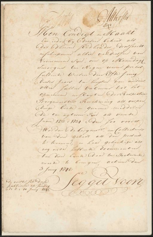Regionaal Archief Tilburg, archieftoegang 694, Dorpsbestuur van Diessen, 1677 - 1810., inventarisnummer 2, STUKKEN VAN ALGEMENE AARD, Publikaties door de regenten, 1732 - 1744