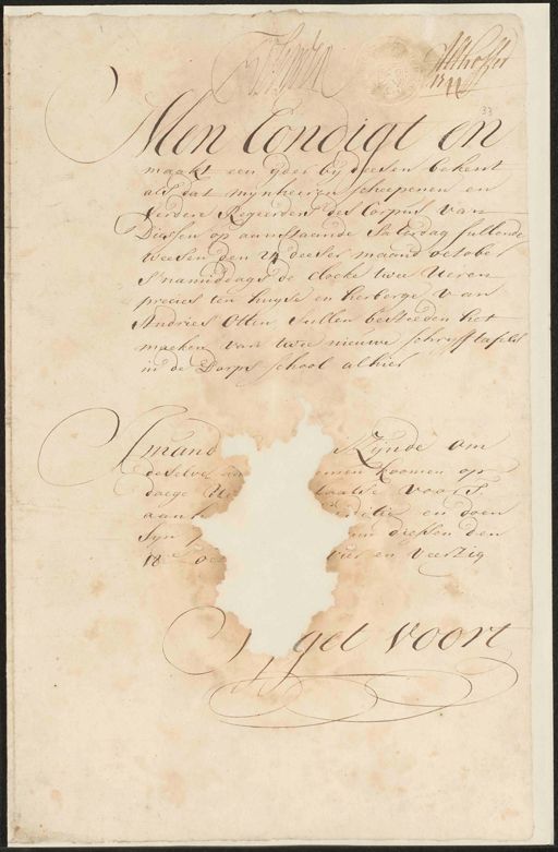 Regionaal Archief Tilburg, archieftoegang 694, Dorpsbestuur van Diessen, 1677 - 1810., inventarisnummer 2, STUKKEN VAN ALGEMENE AARD, Publikaties door de regenten, 1732 - 1744