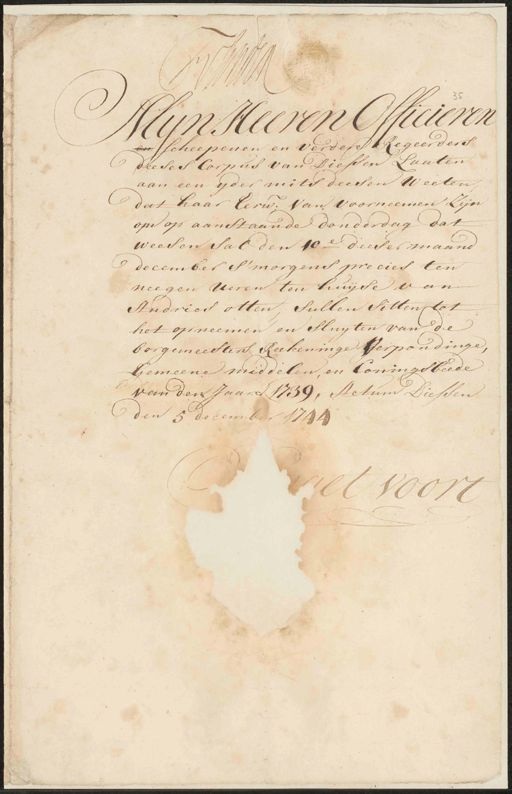 van den Jaare 1739, Actum Diessen