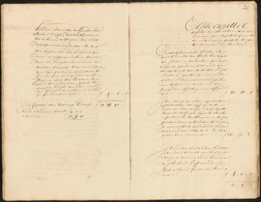 houden, soo is den welgemelden heere Rentmr. versogt, deselve chijnsen in loe te koomen ontfangen, oversulcx desselfs verteeringen tot 17:10:0 ten huijzen van Jan Goossens ge¬ daan is afgesprooken, omme door de dingbanke alhier te worden betaalt, waar inne diessen voorsijn quota verschult is de somme van vier gulden en Eenen stuijver, die den Eersten ren¬ „dant Cornelis van Gool be„ taalt heeft aan den voorn: Jan Goossens, volgens ordonn: 4„1„0 En quitantie dus Dit Capittel van Verteringe bedraegt ƒ 31„ 10. 8 door den 1 Rendand betaald ƒ 4. 1. 0 3 Rendant 27„ 9„ 8 25 Elfde capittel van alderhande saken, waar van hier voor geen capittel gemaekt is, en daar onder gestelt het tantieme van der Rendant, Eerstelijk comt den Eersten Ren¬ dant Corneelis van Gool, Een Lijst van fouten en Outvallen, van desert Leggende goederen, als meede van aartgebruijk van vertrokke huijs houdens, welke hij naar alle gedaane devoiren niet heeft kon nen bekoomen, de somme van tien gulden, elff stuijvers en elff penn. 10 „ 11 „ „ dico Item comt denselven sijn tantieme of collectloon tot vijff per cento en sulcx van het tweede en derde capitte¬ len van den ontfangh, zijnde de Reële en personeele omslaagen, en dorps particuliere inkomsten bedragen, de naar aftrek van de voors: fouten de somme van ƒ 529„ 10„ 1 En dus ƒ 26„9„8 alhier Eene somme van Item door den selven Eersten Rendant betaalt aan Joseph Baijens, voor een Jaar huur van de schoolmrs. hoff voor den Jare 1736 volgens quitantie annex ƒ 4„0 „ 0 dus 41„1„3