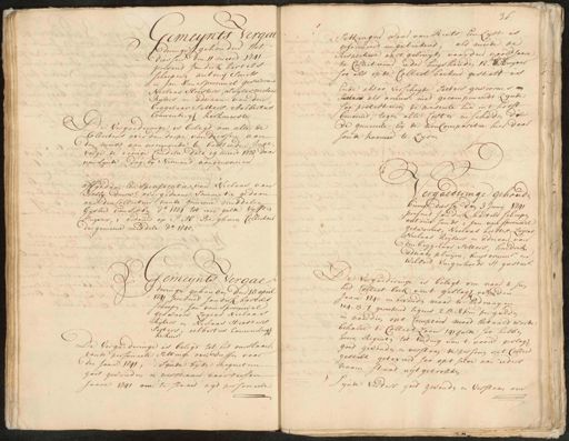 Gemeijnts Vergal deringe gehouden tot Diesseer den 11 meert 1741 present Jan dirk bartels scheepenen antonij Smits en Jan van Spreeuwel gesworens Niclaas Heesters, Luijcas niclaas Rijkers en adriaan van den biggelaar Setters, Aelbertus Couwenbergh kerkmeester De vergaederinge is belegt om alle de collectens over den dorpe van diessen aan den minst aan neemende te besteeden, Inge¬ volge de voorige Conditie dato 19 meer 1737 daar van synde, dog bij Niemand aangenoomen affgedaan een specificatie van Niclaas van Bossij deurw:s overgedaane sommatie gedaan aan den Collecteur vande gemeene middelen Gysbert van Sibbe d.o 1734 tot eene gulde vyfftien stuijvers, en ordonn op J: M: Berghman Collecteur der gemeene middele do. 1740, Gemeijnts Vergae deringe gehouden den 15 april 1741 present Jan dirk bartels scheepen, Jan van Spreeuwel geswoore, Luycas Niclaas Rijkers en Niclaas Heesters setters, aelbertus Couwenbergh kerkenr: De vergaederinge is belegt tot het omslaan vande personeele Settinge over diessen voor den Jaare 1741, Sijnde bij de Regent een goet gevonden en verstaan voor deesen Jaare 1741 om te slaan agt personeele 36. settingen waar van Reets Een Lijst is geformeert en geteekend, als meede de Respective aart gebruijken voor den voors jaare halve te Collecteeren ieder huyshouden 12. & huijver soo als op de Collect boeken gestelt is Ende alsoo verscheyde setters gewoorens en setters als armw: niet gecompareerdt zynde soo protesteeren de presente hier in t hooft benoemd, tegen alle Costen en schaden die de gemeente, bij de noncomparitie hier door soude koome te lijden Vergaderinge gehouden binnen diessen den 3 Junij 1741 present Jan Dirk Bartels scheepen Antonie Smids en Jan van Spreuwel gesworens, Niclaas Heesters, Luijcas, Niclaas Reijkers en Adriaan van den biggelaar setters, hendrik Adriaan pluijm, huijs armmr. en wilbord vingerhoeds H geestuur. De vergaederinge is belegt om naar te sien het Collect boek vant geslagh over den Jaare 1740 en bevonden maar te bedraagen 104„ 13„ 8 gereekend tegens 2 st. 8 pen. per gulden en naardien opt Comptoir moet betaald worde behalve t Collect Loon 141 gulde soo hebben heeren Regenten tot Vinding van t voors. geslagh goed gevonden en verstaan de personen opt Collect gestelt getaxeerd soo opt selve aan ieders naam staat uytgetrokken inde verders goet gevonden en verstaan om