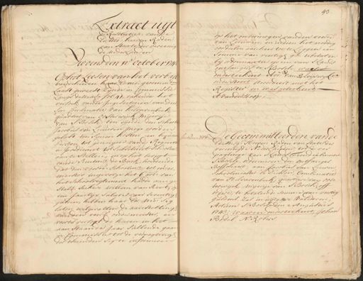 Extract uijt de Resolutien van de Ed: Mo: heeren Raden van Staate der vereenig de nederlanden Woens den 17e. October 1742 Op het Leesen van het verbael van de heeren haar Ed: mo: gecommden. Laast geweest zijnde in Commissie Langs de Mase fol: 41, rakende het versoek van de Ingesetenen van Dies sen Combinatie van hilvarenbeek quartier van Oosterwijck Mijerije van S Bosch, ten eijnde den school Jacobus van Leeuwen moge worden gelast ten synen kosten een bequaem persoon tot genoegen van de Regente en predicant tot substituut schoolmr. aan te stellen, en op het berigt van de Rentmr. de Back, houdende dat den voorn: schoolmr. tot onder¬ meester ingevolge het 6 art: van het schoolreglement hadde aange¬ stelt seekere willem van Riet, of een Jaarlijx salaris van seventigh gulden, hebben haar Ed: Mo: sig laten welgevallen de aanstellingh van den voors. ondermeester, en voorts versogt de heeren in het aan staande jaar sullende gaan in Commissie tot de verragtingh der thienden sig te informeren 43. op het onvermogen van den voorn: van Leeuwen, en indien het noodig en oordeelen aan hen toe te Leggen een somme van veertigh gl. te betalen bij ordonnantie op een van s Lands ontfangers te S Bosch, waar 1 onderteekent Adv: van Bleijswijkvr. onderstont Accordeert met het Register en was geteekent A: van der Hoop, factum est De Gecommitteerden van de Ed: Mog: Heeren Raden van State der vereenigde Nederlanden, tot de ver¬ pagtinge van s Lands Tienden binnen S Bosch, ordonneren den ontfanger Bosschaert, aan Jacobus van Leewen schoolmeester te Diessen, Combinatie van Hilvarenbeek, quartiere van Oos„ terwijck, mijerije van s'Bosch, off ordere, te betalen de somme van veertig guldens, zal in uijtgave valideren, Actum s' Bosch den 2 Augustus 1743; waaren onderteekent, Johan Bodel, N: Robers,