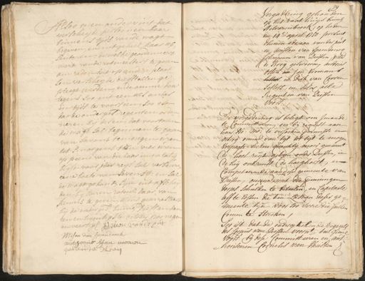 Alsoo men ondervint dat verscheyde persoonen haar binnens tijds vande wagt begeven, en int geheel haar ab„ senteren, de welke geordonneert wert vande rotmeesters te gaan om reden dat op andere plaat- len verscheyde diefstallen ge- pleegt werden, ende omme daar tegens soo int een als ander in tijds te voorsien, soo ist dat de onderges: regenten ordan„ neren by desen, dat voortaan de wagt sal beginnen te gaan van savons ten negen wien tot smorgens tien vier wien op peene van die daar in na latig blijft voor jder reijs sal verbeuren eene boete van seven stver: en sal de wagt gehouden sijn in't afscheij- den bij haren rotm=r daar van kennis te geven, aldus gearresteert bij de onderges: binnen diessenden een en twintigste october 1700 negen en veertigh Adriaen van de put Mison van Spandonck anthoonie Jan moonen petende Roeij 59 Vergadering gehouden op het raathuijs binnen Hilvarenbeeck, op heden den 14e. april 1750. present dheeren adriaan van der put en misson van Spaendoncq scheepenen van Diessen, peter de Booij geswooren, andries Otten en Jan Vromans setters en Dirk van Corven setters, en sulcx alle Regenten van Diessen voors: De vergadering is belegt om Imande te Committeeren, om bij request aan haer Ho:Mo: te versoeken permisse en octroij omme van tijt tot tyt te mogen verpagte seekere quantitij moer genaemt de hool regt gelegen onder Diessen, in de heij ontrendt (de haeghorst, en Competeerende aan dese gemeente van Diessen, omme met die penningen dorws schulden te betaelen, en Capitaele aff te lossen die ten Lasten deser ge¬ meente sijn voor soo verre die sullen Comen te strecken, Soo ist dat de ondergeteekende regents des corpus van Diessen voornt. ten fiene voors: bij dese Committeeren en aut¬ horiseeren Cornelis van Heusden