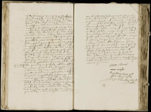zielen, soo wanneer die uuijt henne sterffelijke Lichaemen sullen comen te scheijden inde genadigh, ende barmhartige handen Godts Almachtigh konnen schepper ende verlossen, ende henne doode lichamen aengedaen te worden een eerlijcke ende ristelijcke begraeffenisse, stellende ’tselve in banden, ende ter discretie van de langh levende hender beiden, ende nu tredende ter dispositie van henne tijdelijcke goeder soo hebben de voorn. Comparants maelcander wedersijts gemaackt, te weten d'Eerstster¬ de Langstlevende Erffgenaem, ofte mr. off meestersse voor altijt van alle ende een gelij¬ de halff ende meubele goederen gelt gout¬ silver gemunt ende ongemunt, Actien, schulden ofte crediten omme daermede te doen als met sijne ofte haere hij gene goederen ende vanwegens de Erffgoederen dat de langstlevende daervan sal treck jaerlick ofte genieten de proffijte, ofte de bladt ten waere saken dat de langstlevende van doen ofte van noode hadde, in sulck gevalle, soo sal de langstlevende derffgoed drijelijck mogen belasten beswaeren, ende oock mogen vercoopen sonder aansien van manden ter wereldt, allen ’tghene voorsz is verclaerden de voorn. Comparant te wesen hen testament laetsten, ende duijsterste wind willende, ende begerende dat denselven in alle poincten ende leden sal worden achtervolght, cracht ende macht hebben ’t hij bij forme van testament Codicill, donatie inter vivos vel causa Mortis, Legaet off soodanigh contract als imandts Christen mensche laetst ende uuijtterste wille alderbest ende bondighste soude connen off mogen bestaen niettegenstaende eenige missiën in de formalitijten te deser gerequireerdt gepleeght mochten sijn, off datter eenige Costumen desen eenichsints waeren contrarierende Aldus gedaen ende gepasseert ten Comptoire mijns notaris ter presentie van Willem van Es, ende Hendrick Janssen Kaijmaecker beijde, als getuijgen aan geloove hiertoe versocht ende gebeden die dese beneffens de voorn. Comparanten ende mij notario voornt. inde hebben onderteeckent des naermiddaghs ontrent ses uren, Pieter Snels Arie Matijssen Willem vande Hendrick Janssen Mij present D: de Roij nots: pub: 1110