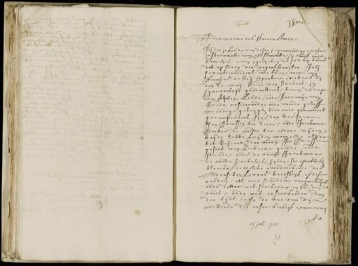 hon Spoell copie uuijtge Inden naeme des Heeren Amen Bij den inhoude van desen jegenwoordigh openbare instrumente van Testamente, sij condt ende kennelijck eenen gelijcken, die sulckx behoorl dat op heden den negenthiensten julij seventienhondert ende thien, voor mij Dionisius de Roij Openbaer notaris bij den Edelmogende raide van Brabant, in ’s gravenhage geadmitteert binnen den dorpe van Alphen, Lande, ende Barronnie van Breda residerende, ende voorde gelooff¬ weerdige getuijgen hiernaer genomineert gecompareert sijn, den eersaemen Jan Prinssen ter Eenre, ende Jacobmina Hector de wilde ter andere zijden, beijde echteluijden woonende alhier tot Boscoven den voorn. Jan Prinssen gesont van Lichaem gaende ende staende, ende de voorn. Jacobmina de wilde sieckelijck sijnde, soo opentlijcke bleecke, dewelcke overdenckende des eenschen Levens broosheijt op desen werden, als eene schaduwe verganckelick ende datter niet seeckerder en is, dan de doodt, ende niet onseeckerder, dan den tijdt, off de breve dien¬ willende die onseeckerheijt voorcomen te 19 Juli 1710 26