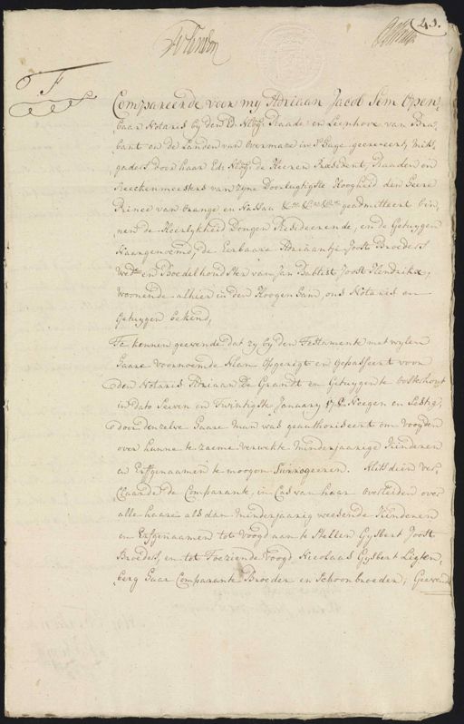 baar Notaris bij den Ed: Mog: Raade en Leenhove van Bra¬