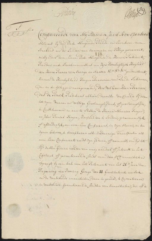den Heere Prince van Orange en Nassau &=a &=a &=a geadmitteert