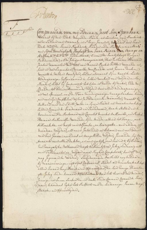 resideerende en de getuijgen naargenoemt, den Eersaeme Adriaan