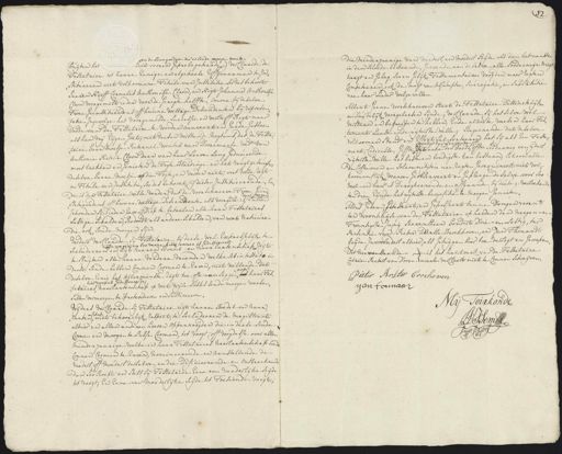 en de Leen goederen die en soude moogen weede hier vooren geprelegateerde, verclaarde de buijten het Testatrice tot haare Eenige en algeheele Erffgenaamen te In¬ stitueeren met volkoomene Titule van Institutie soo des behoort Jaaren Neeff Cornelis Anthonisse Cloon en Nigt Johanna Anthonisse loon voorgemelt ieder voor de geregte helffte, omme bij deselve Twee geinstitueerdens off hunne wettige Descendenten bij represe¬ tatie, ingevolge het voorgemelde successie en versterff regt naar Doode van de Testatrice te worden aanveert en goede geslaer als hen vrij eijgen goet, met deesen verstande nogtans, dat de Testa¬ trice haar moetje Pieternel Wouters van Dooremaale wed:e van Anthonie Peeterse Cloon daar van haar leeven lang geduurende moet trekken en genieten de Togte blaedinge en het vrugtgebruijk deselve haare moetje op die togte en verder niet, met volle regt en Titule van Institutie, soo des behoort bij deesen Institueerende, in de is der Testatrice wille verder dat de voorschreeve twee en daar teegen stitueerdens off hunne wettige Descendenten als voorgem: is sullen gehouden sijn ieder zeven Diep te betaalen alle haar Testatrices lastige schulden, soo doodt als andere schulden, van wat natuure die ook soude moogen sijn verders verklaarde sy Testatrice bij deese wel Expresselijk te in voegen en sooverre hier vooren is gedisponeert secludeeren en uijt haaren boedel en naarlaatenschap uijt te sluijten alle haare verdere vrienden welke abintestato in deese soude hebben connen coomen te erven, niet willende dat op deselve eenig het allerminste regt toe ofte aanseggen tot haar Tes¬ hier voorens gedisponeerde „tatrices haarlaatenschap op wat wijse sulks soude moogen weesen sullen vermoogen te pretendeeren en sustineeren wijders verclaarde sij Testatrice uijt haaren boedel en naar schap, laaten met behoorelijk respect te secludeeren de magistraat alhier en allen anderen heeren oppervoogden die in deese soude connen en moogen te passe coomen, tot voogt, off voogdesse over alle minderjaarige welke in haar Testatrices naarlaatenschap soude connen coomen te erven, nomineerende en aanstellende de vaeders off moeders derselve en die dificieerende en ontbreekende dan soo Roep en stelt sij Testatrice eene van vaederlijke seijde tot voogt, en eene van moederlijke seijde of toesiende voogt die minderjaarige van vaeders, en moeders seijde als dan het naaste in den Bloede bestaande, geevende aan deselve alle soodaenige mag kragt en gesag, soo en gelijk Testamentaire voogden naer regen Competeeren, ook de magt van assumptie, surrogatie, en substitutie nae haar lieder welgevallen Allent eene voorschreeven staat de Testatrice Distinctelijk en duijdelijk voorgeleesen sijnde, verclaarde hij hetselve wel verstaan en begreepen te hebben, ende alzoo te weesen haar ses tament laaste ende uijterste wille; Begeerende dat deselve volkoomen standt en Effect sal sorteeren het sij als hen Testa¬ onder een off ment, Codicille, gifte uijt saake des doods, offte soodaanig een ijders uijterste wille het beste en bondigste kan bestaan, schoon allen de Costumen en solemnitijten nae regten gerequireert niet vol¬ koomentlijk waaren geobserveert en gepleege deselve voor soo veel in haer is derogeerende en affgaande bij deese; versoekende ten dien zijnde het uijterste benefitie te moogen genieten Aldus Gedaan, getesteert, en gepasseert binnen Dongen voorn=t ten woonhuijse van de Testatrice op heeden den neegenen Twintigste Junij seeventhien hondert drieensestig, ter Presentie van Pieter Aartse Broekhoven, en Jan Thonardt beijde Inwoonders alhier als getuijgen hier toe versogt en geroepen Dit neevenstaande is het hantmerk van de Testatrice Catrien Pieters van Dooren maale verclaert niet te connen schrijven Pieter Arster brochoven jan tonnaar Toirkonde en Nots: Publ: 1763