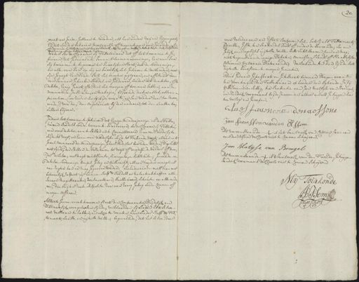 reert en goede geslaan te worden, als hen ander vrijen eijgen goet¬ en dat sonder bekreur moeijenisse off teegenseggen van mande ses cludeerende sij Testateuren uijt henne Boedels, alle die geene welke intestato buijten dese Dispositie inne soude hebben moeten Erven verders soo verclaarden sij Testateuren dat off het kwaame te ge¬ heuren dat geduurende henne tsaemen wooninge, Een van hen sig kwaame te begeeven ten huwelijken staat, dat de soodaenige en alle van hen die sig in huwelijk sal gelieven te verbinden, met sijn geregt een derde part sal moeten uijtgaan, en affstandt doen van hennen geheelen boedel en goederen sonder dat denselve, offte deselve eenig genot, ofte deel sal moogen off konnen hebben, aan de voornoemde Institutie en makagie, blijvende deesen alles alleen en privative (om reeden soo sij seijde voorn:t en hen vorder daar toe move¬ rende) voor die die ongetrouwt bij den anderen tot den laasten toe¬ sullen blijven. indien het kraeme te gebeuren dat eenige minderjaarige in den Testa¬ teuren boedels soude koomen te herideeren, soo verclaaren sij Testateu¬ ren over deselve aan te stellen en te committeeren eene van vaederlijke seijde tot voogt en eene van moederlijke seijde tot Toesiende Voogt, alleen in ’t geval wanneer die minderjaarige geheel ouderloos bevonden worden, dog sulks niet sijnde, dan stellen de Testateuren tot voogt off voogdesse de vaeders off moe¬ ders derselve met magt van assumtie, surrogatie en substitutie, Geevende aen deselve soodaenige ampel gesag en authoritijt, als aan voogden eenigsints nae regten kan en mag gegeeven worden, secludeerende mitsdien met behoorelijk respect uijt hunne resp: boedels en nalaetenschappen alle Heeren Magistraaten, weesmeesteren, bailliuwen, schouten en alle ande¬ ren, die buijten deese Dispositie daarover eenig gesag soude connen of moogen oeffenen. Allent geene voorschreeven staat den Comparanten duijdelijk en distinctelijk voorgeleesen sijnde, verklaarden sijlieden hetselve wel verstaan te hebben, en alzoo te weesen hun lieder resp. heb¬ tament laaste en uijterste wille; begeerende, dat het selve daer 20. voor valideeren en Effect sorteeren sal het sij als Testament Codicille, gifte ter saake des doods off onder de leevende, soo en gelijk een iegelijks uijterste wille best subsisteeren kan en mag niet teegenstaande eenige defecten, ommissien, ’s lands off plaatselijk Costumen contrarie dicteerende; versoekende ten dien eijnde het uijterste beneficie te moogen genieten. Aldus gedaan gepasseert en getesteert binnen dongen voorn en woonhuijse der Testateuren op heeden den agtiende Julij 17 drieensestig ter presentie van Jan Mattijse van Breugel en Hendrik Voermans beijde Inwoonders alhier en als getuijgen hier toe versogt en geroepen. huldeischenen den gesjens Jan franssen van den Assum dit neevenstaande is het van tmerk van Catrien Francen van den assum verclaart niet te connen schrijven Jan Matijse van Breugel dit neevenstaande is brantmerk van den Tweede, getuijgen Hendrik voermans verclaert niet te connen schrijven du Toirkonde Sem Nots: Publ 1763