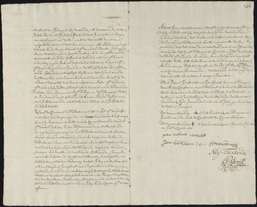 te laatene goederen soo roerende als onroerende, Actien Inschulden en crediten, Gout, silver, gemunt en onge= munt, linnen en wolle, niets ter weerelt daarvan uijtgesondert van wat benaaminge ofte hoedaenigheijt het ook soude moogen weesen off waar ter plaatse geleegen; omme vervolgens in cragte deeser bij de langstleevende aanveert en goede geslaan te worden als sijn off haar ander vrij eijgen goet, en dat sonder bekreun, moeijenisse off teegenseggen van mande, mitsdat deselve langstlee¬ vende gehouden en verpligt blijft nae overlijden van de Eerststervende aan henne kinderen door hen berijts bij den anderen verwekt, voor haare legitime portie off vaeder, off moederlijk goed en bewijs uijt te keeren en te voldoen ieder deselve eene somma van vijff gulden en vijff stuijvers, Desel¬ te kinderen daarop meede tot haare meede Erffgenae¬ men institueerende met volkoome Titule van Institutie soo des behoort. wijders verclaaren de Testateuren tot voogdt off voogdesse wer allen minderjaarige die in hen naarlaatenschap mogte coomen te erven, aan te stellen en te committeeren de vaeders off moeders deselve, en die dificieerende en ontbreekende en nog minderjaerige in den Testateuren naar te laatene boedel bevonden wordende, dan soo roepen en stellende Testateuren eene van vaederlijke seide tot voogt en eene van moederlijke seijde tot toesiende voogt, die minder jaarige het naaste in den bloede bestaande, geevende aan alle deselve de magt van assumtie surrogatie en substitutie en verder soodaenig ampel gesag en authoritijt als aan voogden eenigsints naar regten kan en mag gegee= ven worden, mitsdien met behoorelijk respect uijt hun Testateuren Boedel en naarlaatenschap secludeerende alle Heeren Magistraa= ten weesmeesteren, bailliuwen schouten en alle anderen die buij¬ ten deese Dispositie daarover eenig gesag souden connen of moogen oeffenen. Allent geene voorschreeven staat den comparanten duij¬ delijk en distinctelijk voorgeleesen sijnde, verklaarden sij lieden hetselve wel verstaan te hebben en alzoo te wee¬ en hun lieder Testament laaste en uijterste wille, Be= geerende dat het selve daarvoor valideeren en Effect sor¬ teeren sal het sij als Testament, Codicille, gifte ter saake des doods off onder de leevende soo en gelijk een iegelijks uijterste wille best subsisteeren kan en mag niet teegen staande eenige defecten, missien, ’s lands off plaatse Costum men contrarie dicteerende, versoekende ten dien eijnde het uijterste beneficie te moogen genieten. Aldus gedaan getesteert en gepasseert binnen dongen voorn:t ten Comptoire mijns notaris op heeden den Dartiende April seeventien hondert vier en sestigh, ter presentie en overstaan van Jan Anthonie Verhelst en Jan Willem van Spaandonk beijde Inwoonders alhier als getuijgen hier toe versogt en geroepen. dit neevenstaande is het hantmerk van Dingeman Geeritse van den Hout verclaart niet te connen schrijven. dit neevenstaande is het hantmerk van Cornelia Jacob van Gils verclaart uts: van Antonie verhelst Jan Willem van Canon Mij Toirkonde ten Nots: Publ: 1764