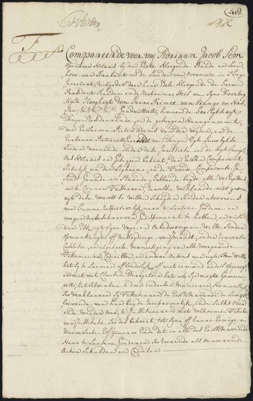 „tigste Hoogheijt den heere Prince van Orange en Nas¬