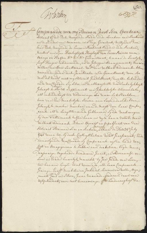 Notaris Adriaan Sem en seekere alhier de Dato 31 Juli