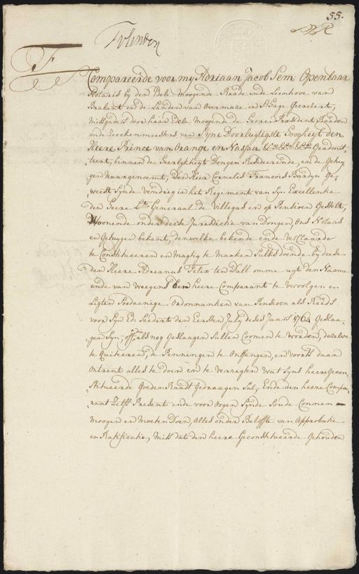 Heere Prince van Orange en Nassau &=a &=a &=a geadmit¬