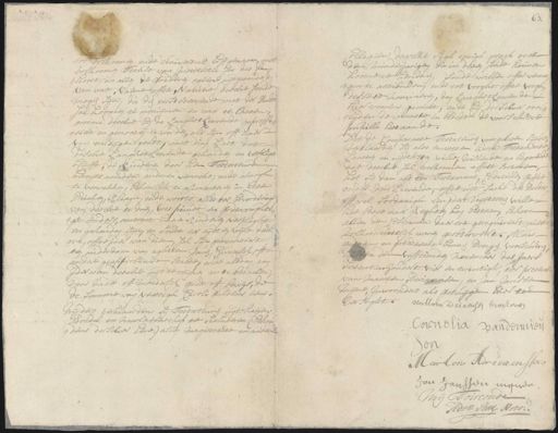 ende de van volkoomen titule van Institutie soo des be¬ poort in allen de goederen egeene uijtgesondert van wat naeme offte maniere deselve soude mogen sijn, die den eerststervende met de dood sal koomen te ontruijmen en naer te laeten omme deselve bij de langhstleevende geproffi= teert en genooten te werden, als sijn off haer vrijen eigen goedt met dien last dat deselve langhstleevende gehouden en verpligt blijfft, de kinderen door hen Testateuren bereijts aan den anderen verwekt, ende alnogh te verwekken, behoorlijk te alimenteren in eerde Drinten, kleagie ende voorts alles ter bevordering van deselve te doen, wes pieuse en Godtvruchti= onders omtrent haere kinderen verplight en gehouden sijn en sulcx ter tijdt en wijle desel¬ ve offte de van dien, sal sijn geavanceert en ouderdom van aghtien jaren, huwelijk oft andere geapprobeerde staete, ende alsdan aan der van deselve uijt te reiken en te betaelen voor vader off moederlyk goedt off bewijs de de somme van veertigh Caroli guldens dens wijders verklaarden sij Testateuren uijt haeren boedel en naarlatenschap te secluderen (behou= dens derselver eere) alleen magistraete en andere Collegien dewelke sigh eenigh gesagh over den minderjarigen die in desen soude konnen koome te hendeeren, soude willen offte veran¬ gen te attribueren, ende tot vooght offte voogh¬ desse te nomineren, den langhstleevende hiervoorens gemelt ende bij derselver over¬ lijden de naaste in bloede de voorschreve pupille bestaande Dit de comparante Testateuren voorgelesen sijnde verklaarden sij also te wesen haren Testament laasten en uijtterste wille, willende en begerende dat deselve sal volkoomen effect sorteren het sij dan als een Testament, Codicille, gifft onder den leevende offte uijt saeke des Doodt off wel soodanigh een der uijtterste wille het beste naer reghten kan bestaan, schoon allen de costumen daertoe gerequireert niet volkoomentlijk waren geobserveert. Aldus aan en getesteert binnen dongen voorschreven en den vijfftienden November des jaers seventienhondert vier en twintigh ter presen van Marten Adriaansen en Jan Janssen Mijne Inwoonders als getuijgen hier toe versoght. Willem Adriaensen broer oven Cornelia vanderen Een Marten Adriaenssen Jan Janssen mijnen oirconde Adr San Nots