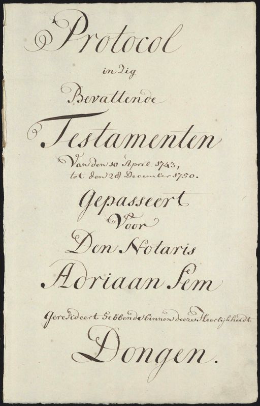 Regionaal Archief Tilburg, archieftoegang 930, Notariële archieven van de Gemeente Dongen, 1721-1935 , inventarisnummer 5, Adriaen Sem, Testamenten, 1743-1750