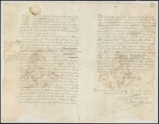 dongen voornt. besteet en woonende ten huijre Acte vande voorsz: Hans Roeff ende Maria van de lande, sij Comparanten dezelve Maria van de lande onder dezelve ernstige en strieur affvra¬ ginge en informatie hebben hoord seggen en betuij¬ gen dat sij maria van der Lande dat doghtertie door de vrouw van eenen Melis Hoevenaer, op de hoeff van d’heer Christ Johan Pels voorn gelegen tot dongen, heeft gekregen ten haren huijze oudt alsdoen omtrent vyff a ses weeken in zeer sleghte Lure en drie blauwe kempe doeken, dienende tot Baker Boeken setten oudt de en over en wende dat een decken de voorsz: Hoevenaest de kost daer aan den wandel heeft wedergehaalt, zoo dat de vrouw sij maria van de lande om allen ’t voorsz: genoot¬ maakt was zoo zeijde) van haer eijgen seght en arm goedtje, tot dekkinge van ’tzelve vindt te emploieren, en dat voor een somme van ses en Dartigh gulden verlijcke tot primo meij 1727 jongstleden en van dien tijt aff tot en 1729 bij nieuw accort bedongen hadde twee en veertigh guldens jaers, sijnde daeronder ses guldens voor onderhout van kleagie van Linde en wolle waerover die vrouw te gelij¬ zeijde ook dat uijt die ses guldens dat vindt sijn behoorelijkheijt niet van voorsz: kleagie niet konde hebbe hebbende egter niet meer konnen bes¬ dingen, van welke somme sij betuijgde en roode van tijt tot tijdt betaalt te werden, door den voorn. goevenaer van gemelten Hr Christ Johan Pels, niettegenstaende tzelversindt die ogh zeer benodight nade twee wanneer ’t al eens hadde gehadt 105. ende laastelijk verklaerde de voorstijde comparantie dat hetzelve sindt aan haar zoowel als aan de requirante verto door voorsz. Maria van der Lande is vertoont, ende dat naer ondersoek en examinatie is bevonden dat ’tzelve doghtertje aan hadde manteltje van tierentlijn ten verrokje daeronder dito gelast gaat en een linde en roodt kussen seght onderrokje re met een off hembt een paer groffe wolle koussen Ende een paer houte blat oft klompjes, allen ’t welke was haer beste en kostelijks te habiten lagie, sluijtende de comparante attestante met meede haere verklaringe, zoo gaeve dezelve voor redenen van zeer goede wetenschap als bien ider in ’t byzonder bij deses vermelt dus gedaan verklaert en gepasseert binnen van zoon op landt voorschreven heeden den aghtien september sjaers seventienhondert getentwint¬ te presentie van genius Tijmans, ende Jan Adriaan Joris, Inwoonders als getuijgen van geloove hier toe versoght door Cornelis Hans Bergh 1728 Ceel Thomans Dit nevenstaande is ’t hant me van den tweede getuijgen gestelt in mijn prezentie Toirconde Adr Sem Nots. 1728