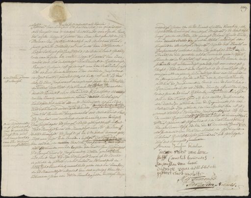 Agnie onder presentatie als booven peeters van Loon in het particulier in qualiteijt als vooght van ’t eenigh weeskindt van sijnen broe¬ der wijlen Mighiel Pieters van Loon, dat gemelten E: Adriaan van gespretenselijk als acte van Frans port gehadt hebbende al over mede dan ses jaaren heeft verkogt, de haastelijke en meubilaire goede¬ ren van wijlen den voorn: Mighiel pieters van Loon zonder tot hiertoe eenige de allerminste reekeningen Bewijs, Reliqua oft openinge van den overschot jaff het te kort koomende aan hem tweeden Comparant in sijne voorsz: qualiteijt te doen, off wel hij daar toe bij hem comparant aangezogt, dat dan belooffde alle vierde en weeder naar liet verklaaren Comparanten diverse Boedels alzoo behandelt, specificq te zullen konnen aannemen, maar kortheijt halve dezelve alhier et met stilswijgen te passeren houder herentiale voor Ende verklaarde vorders den derden Comparante tafel Cornelis Brouwers waagemaaker tot Oosterhout, dat hij Compas voor omtrent twee maanden van de wijle Jan Huijbregts de Jongh, heeft gekogt, vijff klijne eijke boompjes voor een sommetje van ses guldens welke boompjes hij Compt op den 2:en deezer maant goet¬ heeft naar huijs doen haale wijders verklaarde al meede onder present avond den sesten, en tweede laasten Comparant het gebuuren van den wijlen den voorsz: Jan Huijbregts dat De Jongh, dat sij Comparanten hebben gezien allen het hout dat bij sijn De Jonghs zoon op de steede is gehakt en gebest, niets anders in bestaat, als in twee lijke boomkens, maakende geen eene kas brandt woord ende stammetjes nergens dan tot wijnigen brandt bekwaam, Item den Eesenboomken, geen dartigh stuijv in mindernisse en op Reekeningh van 't geene hem Compt en qual als wagemaker van hem de Jong was competerende ^ te hebben gedaan off alsnogh 119. weerdigh, Item een oudt kwaaterssen boomken, te uijttersten waardigh twintigh stuijvers en laastelijk nogh gezien te hebben het geringe schaal brandthoudt aan grooten Akker waardigh ten hooghsten seventigh stuijvers zijnde dit haares en op Comparants weetens allen het gekapte aan de steede en den grooten akker, wezende geene appel koomen te in ’t geheel off eenige osse boomen in ’t plurali, off meervoudige, gevelt oft om verregen kapt, ende want men verpligt is de waarheijt be¬ tuijgenisse te geeven, inzonderheijt daartoe verzogt en gerequireert zijnde als ten deezen, zoo verklaarden alle vier de comparanten deeze aan de voorschreve Requirante niet te hebben konnen off willen wij goede ven geevende voor reedenen van weetenschappe van als in den Tecoet, dat sij drie eerste Comparanten ten deele zijn gebuuren van de requirante en tot Oosterhout sijn gebooren en van kindts been affge= woont hebbe en hij vierden Comparante, dat hij bij in sijne huijzinge &a de voorn. Requirante op eenen werff is woonagtigh Aldus gedaan is gepasseert en verklaart binnen dongen voornt. op heeden den 16 november sjaars 1737 te presentie van Dirk van Alebeek, en Gijsbreght Niklaas Roeloffs, beijde Inwoonders als getuijgen hier toe verzogt, Adriaen Jansen Ketelaer adriaen Velde van Loon stoff Cornelis brouwers Jan Janssen van Bavel Dierick van Aellebeck gisbert Claes Roeloffs Het Toirconde Advt hem notaris 1