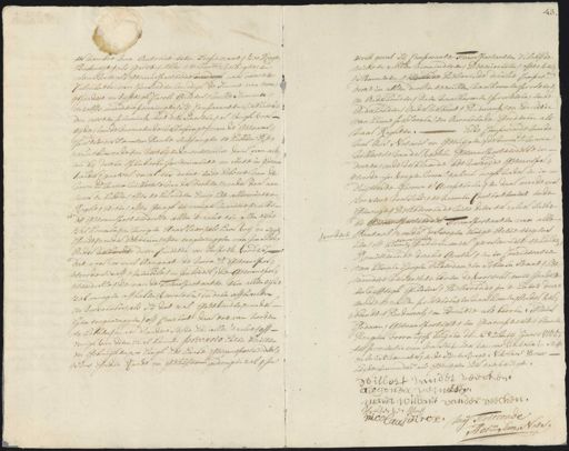 ter nombre van Omtrent tien loopenraat, zoo hoge boekweijt als garst, allen het voors verkogte en alen wettigh getransporteerde naar exacte calculatie van henlieden weerdigh de somme van twee¬ hondert en vijfftigh Caroli guldens welke somme en zelffs meerder penningen sij comparanten verklaerdt den eersten pennink met den laaten sal langh voor tijde van de voornoemde verkoopinge van de getrans¬ porteerde ten Danke ontfangen te hebben de nuntieerende ten verthiende overzulcx daarvan als nu bij deezen openbaren instrumente en Acte in forma naeder gantschen al te doene ende behoeve van de voorn. Maria Wilbertse van der Veckens ronder daar aan meer te hebben offte te behouden eenig het allerminste reght actie offte gezagh in eenige maniere zulks de getransporteerdeese allen ’tzelve ten allen tijde zal konnen en moogen aanslaan, als haar vrij en sig Goedt zonder bekrum, ofte teegenzeggen van imand, onder deeze conditie en besprek vorders dat voorzooveel aangaat de voorn: getranspor= teerde slaaft, meubile en imboedel, de getranspor¬ teerdesse, die van de Transportanten ten allen tijd zal moogen affhalen vervoeren en doen affhaelen en vervoeren als sij dat al goetvinden onder hen tegenzeggen off consent daartoe van nooden te hebben en aan d’ andere seijde hen allen ’tzelve off eenigh vandien zal konnen precario laten bezitten en gebruijk soo langh het haare getransporteerde eens goeden Raadt en gelieffte gedragen zal in welk geval sij Comparante Transportanten belooffde niets te zullen verminderen deterioreren, offte ver¬ slimmeren de Beloovende dezelve Compast deeze in allen deelen te zullen naakoomen presteren en onderhouden doet naarkoomen presteren ende onderhouden onder verbant bedwank en executie van hunne persoonen en onroerende goederen als naar Rechten ende Compareerde meede voor ons notaris en getuijgen de voorn: Maria Wilbertie van de eeken getransporteerdesse in deezen, ende verklaarde het voorzeijde getransport teerde in voegen voorn:t palen nogh nader en in d'uijtterste forma t’ accepteren, en daarmeede voor zoo verre voorschr: te neemen contentement ende genoege delibererende mitsdien te zelve saeke de ende Transportanten van alle vordere hantaal, zonder deswegen enige actie teegens onroerende hen off kenne goederen meer gereserveert te houden Remitterende dezelve gratus en in conzideratie van kennen hooge ouderdom en soberen staat het meerdere verstrekte boven de voorsch tweehondert en vijfftigh guldens, beloovende in ’t naere deeze meede te zullen presteren en naarkomen, onder wee¬ bandt, bedwank en executie als booven, Aldus Gedaan, getransporteert en geaccepteert, binnen dongen voorn:t op huijden den 28:e meij sjaars 1735. te presentie van Mons:r Wouter Vermaas, winkel in ste= en mr. kleermaker, ende sijnen negt Nicolaas Dirck beijde inwoonder als getuijgen hiertoe versogt Willert vander Veecken schouder verken mara Willart vander Beecken. Wouter verstael nicolaas Dircx mij Toirconde Adr hem Nots