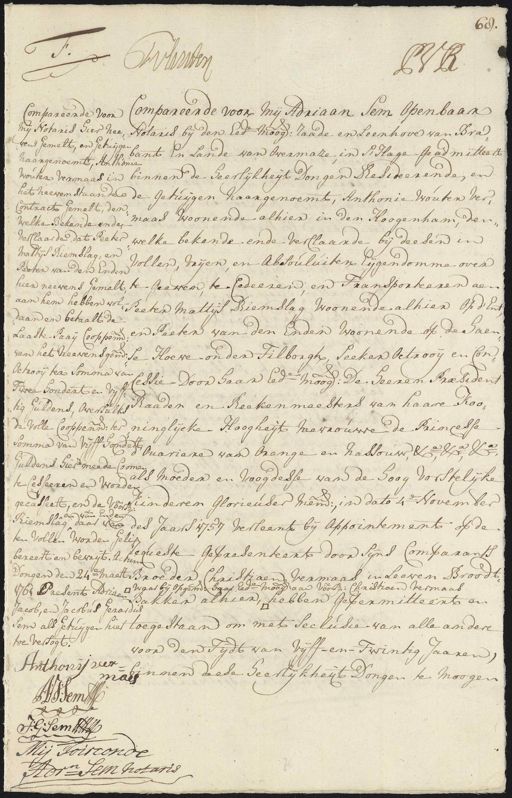 Regionaal Archief Tilburg, archieftoegang 930, Notariële archieven van de Gemeente Dongen, 1721-1935 , inventarisnummer 7, Adriaen Sem, Transacties, transporten van roerende goederen, voogdstellingen en verklaringen (T-V)