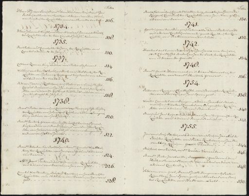 Folie D Heer P:J: van Loon, Monsr. Arnoldus van Son, Mons:r Jan persoon Anthonie verhelst en Adriaen van den Nieu¬ venhuijsen ter requisitie van Anthonetta van sal 106. 1734. d’heer Johannes Nuijts en d’heer Nicolaes Francois Nuits ter requisitie van de Heer Cornelis Joseph Nouwen 108 1735. Bartholomeus Cornelisse de Jong, ter requisitie van Cornelis Adriaense de Jong 110. 1737 Catriena Kroonenburg weduwe van Pieter Liefmans 114 Willem van den Elshout en Dirk van Aelbeek, ter re= quisitie van Johanna Heijmans huijsvrouw van Ad= Wilberd van der Reeken 116 Adriaen Jansen Keetelaer, Arij Pieters van Loon, Stoffel Cornelis Brouwers en Jan Janzen van Bavel ter requi= sitie van adriaantje Gijsbregt Hulshouts weduwe van Jan Suijbregts de Jongh 118 1738. Monsr Pieter Bomens en Cornelia van Venvooij Egte luijden ter requisitie van Johan van Reuth en Adriaen Lange burg weduwe van Jan Jacobs 120„ Monsr. Hendrik Greevers en Juffrouw Catharina sijnen buijk weduwe van Mons:r Laureijs van Loon ter regu= sitie van Johan van Reuth en Adriaen Langenbur= weduwe van Johan Jacobs 122 1740. Mons:r Abraham de Bosson en Monsr Cornelis Woesten berg ter requisitie van Jan van Gils en Adriaen van Jaaren 124 M:r Jacob Ferdinandus Wijmers, ter requisitie van Adriaen van jaaren en Jan van Gils 126 Cornelis Woestenberg, Laureijs vaerten en Jan Dens ter requisitie van Adriaen van jaeren en Jan van gils 128 olij Marie Vermeulen, Cornelis Woestenberg, Anneke en Jenneke Kuijpers, cum suis ter requisitie van Jan van Gilse Adriaen van Jaeren. 130 1741. Geertruij van den Dungen, Pieternella Adam Pieters wed:e van Adriaen Canters en Anneke Gerrit Raessen ter re= quisitie van Bastiaena van der schilt 132 1742. Nicolaes Anthonie bierwagen, Jan Janse van son, vin= cent Christoffel sensen en Jan de Laet ter requisitie van Adriaen de Grandt 134 1748. Monsr. Gerrit Havermans en Adriaen vermoolen ter requisitie van mons:r Hendrik Greevers 136 1754. Pieter van Rooij en Christoffel van Boom, ter requisi= tie van Adriaen en Jan Sprangers 138 Wouter Cornelis van Dongen, Adriaen Jacobus Moole mans, en Nicolaes Cornelis van Dongen, ter Req sitie van Adriaen Simon Boenders 146 Marinus Jan Krijnen, en Adriaen Jan Krijnen ter re= quisitie van Adriaen Simon Boenders 145 1755 Jan van Son Peeter en Adriaen van Son en Jacobus de Bie, ter requisitie van Pieter Keetelaer, en Jan Ster= renberg qqua en Gerrit thaelen 144 Michiel van Eersel en S:r Wouter Vermeulen 146 Monsr Pieter Jacob witte, Dingeman geerde van den Hout en Maria Steevense vermeulen weduwe van adriaen Canters 148 Adriaen van Gool, Denis Joost Dingemans, Pieter Riemslag, Jan Sprangers en Nicolaes van Son ter requisitie van Bastiaen laets 150