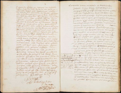 Comparant Coram me Notario et testibus infra scriptis, Sr. Judocus van Heck in woonende borger ende bierbrouwer alhier denwelcken sich verclaerde te stellen als borge ende schuldenaer principael ten behoeve van Sr. Mattijs van Bijlbergen als pachter vanden ouden cleer acchijns alhier voor alsulcke meubile goederen, als Jan Andries Backers t zedert den 27 December 1684 alreede op eenige eeve ofte boedelhuijse heeft gecocht ende verders sal comen te coopen ter concurrentie van de somme van twee hondert guldens sonder meer, welcke twee hondert guldens becomt ende voldaen sijnde, soo sal dese voorsz. borchtocht alwederom ter concurrentie van de voors twee hondert gulden voor credit van den voorsz. Jan Andries Backers blijven continueren ende voorder ofte andere niet als daer voor verbindende sijnen persoon ende goederen hebbende ende vercrijgen op heerlycke ende parate executie volgens des voorsz pachters recht, Dies soo belooft den voorsz. Jan Andries Backers den gemelten Indoen van Heck van de voorsz. borchtochte te Indemneren costeloos ende schadeloos te houden weder onder verbant van synen persoon ende goederen hebbende ende vercrijgende Aldus gedaen ende gepasst. sonder argh oft list desen zoe april 1685 ter presentie van onderge¬ getuijgen, kuschus van Her de sestig Rotterdam testis Ita attestor Rotterdam Comparant coram in Notario et vestibus infra scriptis, Joseph Alsoo Soldaet onder de Compagnie van hr Capn. Godingh als last hebbende van de mede Erffgen. van Jacob van de Zaar, ende heeft in dier qualiteyt verhuert gelijck boven houtier alsoo in hun geaccepteert te hebben seeckeren huijse staende inde kerckstraet alhier van outs genaempt den houtijn, in sulcker volgen ende manieren als tselve bij bouw Cleermaker is gehuert ende gebruict geneest ende dat voor den tijt ende termijn van anderhalff jaer, ingende nu aenstonts ende expirende maij dage eerst comende over een Jaer Alsmen schrijven sal 1687. In dien tijt om ende voor de somme van eenhondert en twintich gulden te betalen van de de tot drie maenden precies, vrij van servies Trap, roepers ende straat ende lanteren gelt des is conditie, dat den verhuerder de voorss. huijsinge den huer tijt gedurende sal moeten onderhouden in goede reparatie, van gelas, vloer ende dach dicht, dan sal den haerder tot innen coste inden voorss. huijse mogen maecken eenen Sackhoven, vereijs ende t'gene aen een backerij is dependerende, allen ’tselfden haerder tijde vande expiratie der huere ieder sal mogen inde nemen ende affbreecken, mits ’tselve stellen in soodanigen stant als het te voorens is geheel ten ware den herhuerder metten verder malcanderen dienaengaende corden verstaen ende accorderen, Sijnde tot dien eijnde tusschen de gemelte comparanten mede ondersproken welgegaanen den verder helft mogen doen, ende die met quitante priseeren aen sijn huepen corten na behooren