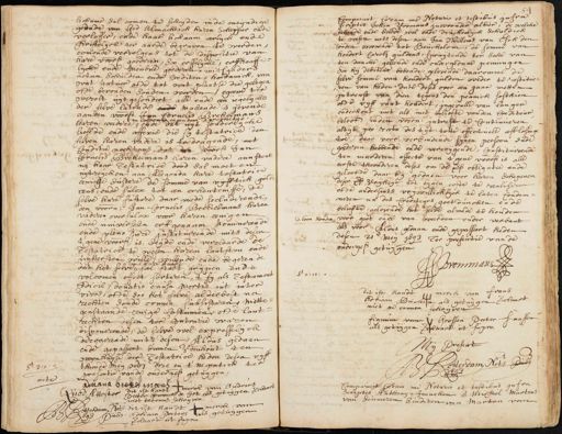 lichame sal comen te scheijden in de oneijndige genade van God Almachtich haren Schepper ende verlosse, ende haar lichaam eerlick ende Christelijck ter aarde begraven te werden comende vervolgens tot de dispositie van hare voorsz goederen, soo erffelijcke, erffhaaff lijcke ende Meubile goederen, mitsgaders actien schulden ende Crediten, hoedanich, van wat nature ofte tot wat plaatse die gelegen ofte bevonden souden worden, egeene ter werelt uytgesondert, alle ende een iegelycke der selve latende ende makende ende gevende aan den voorsz. Jan Cornelis Brockmans in volcom eijgendom ende propriet haren vadere, ende dat uijt sonderlijcke lieffde ende afferie die sij testatrice den selven haren vadere is toedragende, met Conditie nochtans dat den voorss. Jan Brues Berkelmans haren vadere aanstond na haar Testatrice dood sal moeten uijtreijcken aan Alegonda hare testatrice eenige sustere de somme van vijfftich gulden eens, ende sulcx tot een erkentenisse, de selve hare sustere daar mede secluderende, den voorn: Jan Cornelis Boekelmans haren vader oversulcx voor haren eenigen ende uiverselen erffgenaam nominerende ende pleno Jure instituerende mits desen t'gene voorsz is, beijde ende verclaarde de Testatrice te wesen haren laatsten ende uyttersten wille, willende ende begeren de paar gaat dat het selve sal stadt grijpen ende volcomen effect sorteren, 't sy als Testament Codicil, donatio Causa Mortis ant inter¬ vivos ofte soo het selve alderbest na rechten soude connen subsisteren, mette genstaande eenige costumen ofte lant¬ rechten desen ter contrarie waren disponerende, de selve wel expresselijck derogerende mitsdesen, Aldus gedaan ende gepasseert binnen voorhout ten woonhuijse der Testatrice heden desen vijf thiende men xvic drie en tnegenticht presentie van de ondergess. getuygen dit ist handt weeck van Andries adriana brekelmans Pieter Joris de Cort als getuygen verclaert niet te komen schrijven dit ist kandt tmerck van Adriaan Peters als getuijgen verclaart ut supra st. 30 acte Quod Attestor Betterdam Nots. 1693 Pub Comparant Coram in Notario et vestibus infra scriptis Johan Vromans inwoonder alhier, dewelcke bekende ende belede wel ende deuchdelijck schuldich te wesen mits desen aan Jan Willems van Esch den souden woonende tot Heuckelom, de somme van hondert Caroli guldens, spruijtende ter sake van ten dancke geleende ende ondergedane penningen soo hij debiteur bekende, gelovende daaromme de selve somme van hondert gulden weder te restitue¬ ren van heden date deses over een jaar metten intrent van dien tegens den pennick sesthien ofte vijff vant hondert, ingevalle van langer onderhout niet als met belofte van den Crediten belooft in den voorn: intrest te continueren altijt pro rato des tijt, totte effectuele afflossing toe, daarvoor verbindende sijnen persoon ende goederen hebbende ende vercrijgende, constituerende ten moederen effecte van t gene voorsz is alle eerste thoonderen deses om de voors obligatie ende geloofd daar bij gedaan voor heeren schepenen deser voors vrijheijt tot eijgen coste te realiseeren ofte andersints vrywillichlyck te laten condem¬ neren na des crediteurs goetduncken en de beliefte, gelovende het selve almede te houden ende doen houden voor goet ende van weerden onder verbant als voor Aldus gedaan ende gepasseert heden desen 21 meij 1693 Ter presentie van de ondergess. getuijgen Brouman 80:12:8 dit ist kandt merck van Frans Adriaan Bucke als getuijgen verclaart niet te connen schryven signum van Goossen Pater faassen als getuijgen verclaart ut supra Mij Present Rotterdam Nots. Publ: 89 Comparant Bram me Notario et vestibus infra scriptis Anthonij, Jenneken ende Michiel Marten van seineren kinderen van Marten van