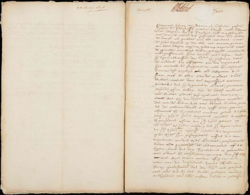 22 mey 1696 minute aris schelt Comparant Coram me Notario et Testibus infra Scriptis Sr. Christoffel van der Heul ende Thom Leurs Schepenen der voorsz. Vryheyt ende dinghbancke van dien, de welcke ter instantie van St. Johan de Jongh als pachter van het montant over deselve vrijheyt op den eedt int aanvangen van hare schepen ampten, gedaan, eenparich voor de oprechte waarheijt hebben getuijght, verclaart ende geaffirmeert sulcx doende mits desen dat hij deponenten neffens den Sr. op gisteren voor de middach ten elff uren van den requirant sijn versocht te compareren inde Raadcamer binnen dese vrijheijt om als schepenen te staan over de eeden van de molders ende backers, welcke daar toe expresselijck waren gecitart, dat hij deponenten aldaar gecomen ghende, gesien hebben dat de voorsz molders ende backers aldaar gecompareert waren doch dat bij den Ses voorgeslagen wierde dat men de heden tijt van beraat souden geven tot des achtermiddachs ten vyf wien precialswanneer hij Secretaris aannam gereet te sullen wesen, gelyck sulcx eenparick wierde toegestaen ende geresolveert alsdan ten verstijde precies op de sie te sullen wesen, dat hij deponenten ten voors tijde op expresse citatie des requirants op de sy syn gecompareert neffens den requirant, molders ende Backers, presenterende haren eedt ingevolge de ordonnantie af te leggen, doch dat den Secretaris in gebreecken was aldaar te verscheinen, waarom den voors en ver niet heeft konnen werden affgenomen waar over den requirant tegens Willem sen protesteerde dat den s met present was ende dat hij niet konde geholpen werden mitsgaders van alle costen, schade en Intresse