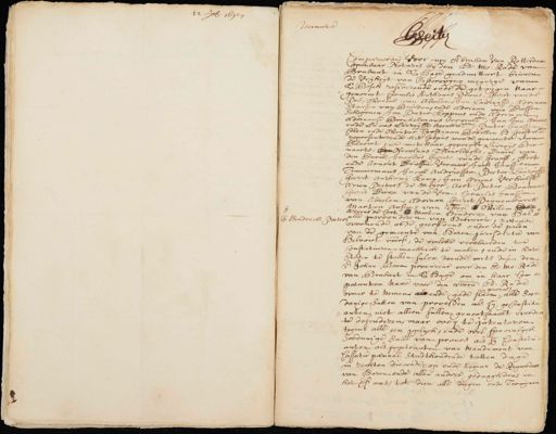 12 lb. 1690 te ende Hendrick Paters 1 Compareerde voor mij Abraham van Rotterdam Openbaar Notaris bij den Ede: Mo: Rade van Brabant in S Hage geadmitteert binnen de Vrijheijt van Oistaricq meyerie van S Bosch residerende ende de getuijgen naar genoemt Cornelis Anthonis Aems, Gerit van de Pas, Wouter van Abalen, Jan Laurisse, Adriaan Janssen van Beurden, ende Adriaan van Dussen Schepenen Jan Pieter Koppens ende Adriaan Adriaanse Borckelmans borgen, Jan Jan Vorens ende Lucas Laureijsz kerckman, Pieter Janssen Colen ende Wouter Corstiaan Brocken H: Geestmr. gepresenterende het Corpus vande gemeente van Helvoirt ende met haar, gevolght Lauris Ber naarts, en Nicolaas Theurlinghs, Daniel van den Turck, Jacobus Garits van de Graaff, Aert ende Arnout Driessen Vermeer, Joost Janssen Timmermans, Jacob Andriessen, dater Laurens Gerit Anthonij hem, Jan Meus Verhulst Arien Boters de mager lest, Pieter Bouwen Gerrit Dircx van de Ven, Cornelis Janssen van Abeelen, dreven hart, Teinenburch Marten Augus van Thuijl ende Willem Ariens de cort ende warten Hendricx van Hal¬ alle inwoonderen van Helvoirt, sittende woonende ofte geerffdens onder de palen van de gemeente van haren jurisdictie van Helvoit voors, de welcke verclaarden te Constitueren machtich te maken, ende in hare steden te stellen sulcx doende mits desen den E: Johan Boon procureur voor den Ed:Mo: Rade van Brabant in s Hage om in haar Com¬ paranten name voor den voorn: Ed: Rade genera¬ waar te nemen aende gade slaen, alle soo danige saken van processen als hij geconstitu¬ anten niet alleen sullen genootsaackt werden te defenderen, maar oocq te intenteren tegens alle een gelijck, ende wal specialyck soodanige sake van proces als hij Constitu¬ anten als impetranten van Mandement van Cassatie penaal stadthoudende totten dage in rechten dienende, op ende tegens de Regeerders van haren ende allen andere gedaagdens in het voors. cas, tot dien alle dagen ende Termijnen
