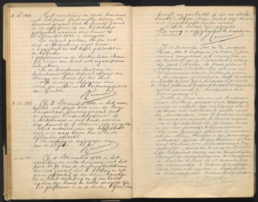 8-12-1942 Het meubilair en verder huisraad uit het pand Oosterwijkschebaan 141 bewoond geweest door de familie Gersons, is in dat pand op een zolderkamer geplaatst, waarna deze kamer op 8 December 1942 is verzegeld. De volgende goederen konden niet door de trapopening naar boven 1 brandkast en een tafel, geplaatst in de bijkeuken. 1 gasfornuis in de keuken laten staan. Op zolder een kast met sigarenpersen laten staan In de huiskamer staat nog een kolenhaard. Deze behoort volgens ver- klaring van Fries bij het huis De woning is vrijgegeven aan Fries, verwalter in de Cartonnagefabriek van Hendels Remmen 9 - 12 - 1942 Op 9 December 1942, is het meu- bilair uit pand No 111 aan de lange - Nieuwstraat, bewoond geweest door de familie Czapnik geplaatst op 2 zolderkamers in dat pand, waarna deze kamers op 9 December zijn verzegeld. Het onderstel van een buffetkast dat niet naar boven kon is in de bijkeuken geplaatst De woning is vrijgegeven aan van de Rijt. Remmen 11 -12-'42 Op 11 December 1942, is het meubilair en verder huisraad, uit het pand No 70 aan de Oisterwijkschebaan bewoond geweest door E. Nathan en zijn gezin, geplaatst, op een klein kamertje op de eerste verdieping en op den zolder waarna deze kamer en zolder verzegeld zijn Een gasfornuis is in de keuken blijven staan terwijl een gaskachel op een der slaap- kamers is blijven staan, omdat deze kachels niet losgeschroefd konden worden. Beide kachels zijn verzegeld De woning is vrijgegeven aan de dochter van Becker. Remmen Op 11 December 1942 des n/m omstreeks 5¼ uur, door de hoofdagenten J de Vries en J Grim - minck aangehouden in de woning van van de Kerkhof aan de Rozenstraat 9 alhier den Jood, Nathan de Groot, geboren te Amsterdam 7 October 1907, gehuwd met Wilhelmina Maria Grootewal geboren te Amsterdam 9 Mei 1916, heeft twee kinderen 1. Naatje de Groot geb te Amsterdam 21 Juli 1939 2. Klaus Johannes de Groot geb: te Amsterdam 28 - Augustus 1940 allen wonende te Amsterdam Korte Koningstraat 6 I. Nathan de Groot was van uit Amsterdam naar Tilburg gereisd zonder reisvergun- ning en volgens zijn verklaring was hij gekomen om wat handel te koopen om dit in Amsterdam weer te kunnen verkoopen teneinde een en ander te kunnen verdienen Om in het onderhoud van zijn vrouw, kinderen en van hem persoonlijk te kunnen voorzien. Hij was gemengd gehuwd en was voorzien van een „Sper" stempel in zijn persoonsbewijs inhoudende, houder Dieser Ausweis ist Biss auf Weiteres vom Arbeitseinzats Freij gestellt. Amsterdam 2-10-1942 No 100798. Na telefonisch overleg met den Hauptsoberführer Lamm der Sicherheitspolizei te 's - Hertogenbosch is Nathan de Groot op 12 December 1942 des voormiddags te 10.26 uur op transport ge- steld naar 's Hertogenbosch en overgebracht naar de Sicherheitspolizei Wolvenhoek 7 aldaar D Neve