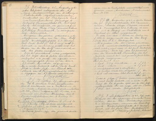 Op Donderdag 26 Augustus 1943 werd telefonisch medegedeeld door A J Marie, vertegenwoordiger van de vereenigde Nederlandsche metaalwalswerken, onderdeel van het Berlijnsche Zink walswerkverband gevestigd te Utrecht Riouwstraat 82, Tel: 15947, dat hij het materiaal van genoemde firma dat den Jood Philip Roeg gewoond hebbende te Tilburg Piusstraat 82, in consignatie had, kwam ophalen. Aangezien deze goederen getaxeerd en inbe slaggenomen waren door den Heer Kalf van de Wirtschaffprufstelle te s-Hertogen bosch Oude Dieze 8, heb ik mij eerst te lefonisch in verbinding gesteld met het kantoor van den Heer Kalf voornoemd, om reden deze goederen verzegeld waren. Door de secretaresse werd medegedeeld dat het zegel door de politie kon worden verbroken en de goederen die eigendom waren van bovengenoemde firma aan den Heer A. J. Marie kon worden afgegeven. Een en ander bestaande uit een partij zinkplaten en looden pijpen, een bascule alles staande aan de Telegraafstraat 29 alhier is vrijgegeven aan A J Marie voornoemd. D Neve Op Vrijdag 27 Augustus 1943 des n/m te omstreeks 14 uur, aangehouden door de ambtenaren van de Zentralstelle für Jüdische Auswanderung Noorderamstellaan No. 244, Jan Rutgers en M. Hinse, in de woning van Jacobus Wesselius aan de Oisterwijkschebaan 145 te Tilburg de Joden: 1e. Leo Benninga geboren te Sneek 30 September 1916, en diens echtgenoote 2e. Sophie Nopol, geboren te Amsterdam 15 Januari 1921. De beide Joden zijn door genoemde ambte naren van de Zentralstelle onmiddellijk mede genomen naar Amsterdam Noorderamstel laan No 244. D Neve Op 10 Augustus 1943, is onder toezicht van den Opperwachtmeester W H Remmen alhier, door den slager Roovers, wonende aan de Koningstraat te Tilburg, de inven taris uit de slagerij van Rothschild aan de Koesstraat 174 alhier, weggehaald. Te voren was door Roovers een bedrag van f 380.50 overgemaakt aan den Heer Kalf Oude Dieze 8 te 's Hertogenbosch Al de goederen die door Roovers gekocht waren en op de inventarisatielijst waren geplaatst, waren echter niet meer in het pand Koestraat 174 aanwezig. Deze zijn door het personeel van den Einsatzstab Rosenberg, die het Joodsche meubilair uit genoemd pand hebben gehaald meegenomen. Het betreft hier 1 kast 55 X 50 X 180 cm à f 15,1 kast idem à f 15, - à f 15,1 winkelopstand met 2 schuifladen en 4 kastjes 55x 160 cm. witgelakt f 40, 1 kast met marmeren blad 35x 160 cm. ƒ 15, Totaal 85, zoodat de slager Roovers voornoemd f 85,te veel heeft betaald, een en ander is per brief dd. 28 Augustus 1943 aan de Heer Kalf medegedeeld, die zou zorgen dat aan Roovers f 85,- zal worden terugbetaald, D Neve Op 3 September 1943, zijn onder toezicht van den opperwachtmeester Remmen alhier, door den Heer Woldenburg, wonende te 's-Hertogenbosch, namens den Heer Kalf van de Wirtschaftprufstelle te 's-Hertogen bosch, uit het pand Jan Aartestraat 96 alhier, van de Bandagefabriek "Nationaal"