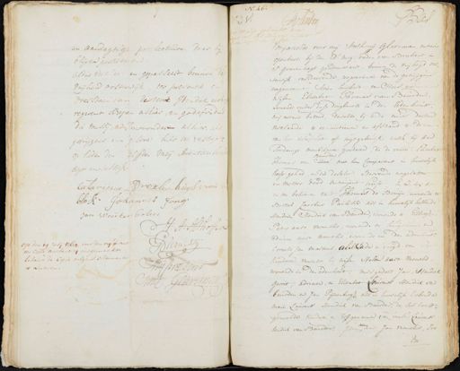 en aandagtige prelectuure daar bij blijven persisteeren Aldus verklaerd en gepasseert binnen de Vrijheid Oosterwijk, ter presentie en overstaen van de Heer Hendrik altha regerent schepen alhier en Godefridus du messij, meede Inwoonder alhier, als getuijgens van gelove hier toe versogt op heden den elffden meij seventien hem agtensestigh Catarina Breeker huysvrou blok Johannes Jong Jan Wanter bolen H: A: Althoff op den 19 Julij 1768 voor den requirant mes een copie authenticq uitgemaakt behalve de copie volgens ordonnantie present te leveren. Int Gedrime No. 46 2 es vinden Compareerde voor mij Anthonij Glaerman, notaris openbaer, bij den Ed: Mog: raden van Brabant in ’s Gravenhage geadmitteert binnen de vrijheijd over terwijk resideerende, ter presentie van de getuijgen nagenoemt Arien huijbert van Hees, weduw wijlen Elisabet Thomas van Beurden, wonende onder dese dingbanck in den denhout mij notaris bekend, dewelke bij ende mits deezen verklaarde te renuntieeren en afstand te doen van het usufruct off togt gebruijk welke hij aan soodanige meubilaire goederen, die de voorn: Elisabet Beurden. Thomas van Heer met hem Comparant in huwelijk heeft gehad en die deselve stervende nagelaten en metter dood ontruijmt heeft en zulcx de en ten behoeven van Thomas de Bruijn, wonende te Berkel, Jacobus Paulisse als in huwelijk hebbende Hendrick Hendrik van Beurden, wonende te Tilburgh Peter aart vermelis, wonende te huijchum, en Adriaan Aart Vernelis wonende in den denhout Cornelis Jan Martens, ieder en voogd van de kinderen verwekt bij wijlen stellen aart vermelis wonende in dendenhout, mitsgaders Jan Hendrik Gerrit Adriaen en Elisabet Lourens Hendrik van beurden en Jan Pijnenburgh als in huwelijk bovende man Laurens Hendrik van Beurden, de ses laast gemelde kinderen en Erffgenamen van voors: Laurents Hendrik van Beurden, Item Aart Jan Vernelis soo