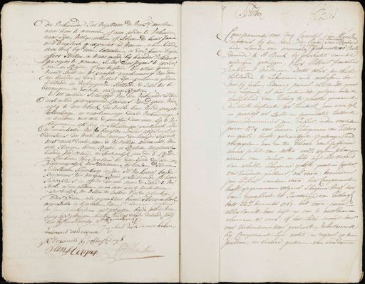 den verhuurder zal vrijstaan de voorsz: moolen naar hem te neemen of aan andere te verhuuren naar zijn welgevallen of schoon de huur jaar niet compleet geexponeert en waaren en hem hande even wel bij doen betaalen en deeze huure buijten effect sullen en waarmeede hij huurder verklaart genoegen te neemen sonder daar jegens te oposee ren in regten of daar buijten door allen ’t geene voorsz staat en tot promte naarkoominge van die den huurder in deeze verbint zijn persoon en goeden hebbende en verkrijgende, stellende dezelve ten be„ dwangen en executie als naar regten En tot meerder securitijd van den verhuurder is ten deese meede gecompareerd Laurens van dijnen, woon¬ agtig te aerlebeek, denwelke hem voor de prompte betaalinge, en naarkoominge deeser verhuuringe en conditien met alle de poincten daarinne, sig te ve= obligeeren, als borg en schuldenaar principaal onder de renuntiatie van t benefitie, ordinis excusionis, en divisionis denwelke hem neevens den huurder spit regt mits deesen, aan de hy willige condemnatie, van alle Heeren hoven, Regten, en Regteren, ter plaatsen haarder judicature en speciaalijk aan den E: Raade en Leenhoore van Braband ten dien zijnde dezelve, on= wederroepelijk constitueeren bij deezen, D' Heeren Sebastiaan Nederburg en Jan H: van Kervel, beijde Procureurs voor welgem: Raade postuleerende, ofte haar successeurs, in officio den eene omme dezelve te ver¬ „soeke en den anderen omme daar inne te consenteeren respectivelijk ten costen en lasten van de gebreekige Aldus gedaan ende gepasseert binnen Hilvarenbeek ter presentie en bijweesen van S:r Adriaan Goossen en Jan Philipsen als getuijgen beijde alhier woon agtig als getuijgen hiertoe versogt deesen dertiende Juli 1700 Vijffen seventig enborg Laurens van deijnen cobus van de meekelen, Adrianus Goossenburgh Jan Heppen Heusden P: Vanden is Compareerde voor mij Cornelis van Mulder notaris bij den Edele Mo: Rade van Braban¬ ende Landen van overmaze geadmitteerd het derende te Beeck, ter presentie van de ondergen: getuijgen, d’heer Petrus Francisen Roeijkens medicine Doctor alhier, denwelke verklaarde te libereren ende ontheffen soo doet bij desen, sodanig parceel akerlandt groot vier Loopende of daar ontrendt gelegen onder de heerlijckheid van Tilborg ter plaatze genaamt den weste leijkant als Hendrik Jan van dyk in qualityt als Last en procuratie hebbende van Dominicus Jan Pessers, in den voorleden jaere 1774 voor heeren Scheepenen van Tilbort en gole heeft getransport, opgedragen, ende overgegeven aan en ten behoeve van Juffrouw Anna Judit van asten wed:e wijlen Johan Adriaen van Meurs, en sulx uijt het verband van alsulke scheepen geloste groot in Capitaal vier hondert guldens, als voorn: dommen, Jan Passers van den voorn: heer Comparant heeft opgenomen volgens scheepene brief daar van gepasseert te secretarije van Tieborg dato 22:e December 1763 het voorn: parceel Akkerlandt daar uit, en van te ontslaan even en al eens, of hetselve nooit daer voor verbonden was geweest, reserveerende hij Comparant syn actie, en regres op den persoon, en verdere goederen van voornoem