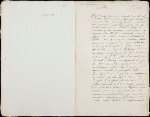 30 7ber 1775 194 2 mael uytgemaekt nen les Compareerde voor mij Cornelis van Heusden openbaer Notaris bij den Edele Mo: Raede en Leenhoove van Braband, en Landen van overmaze in s' Hage geadmitteert Residerende binnen Ervarenbeeck in presentie vande getuijgen ondergenoemt Adriaan van heesch, woonagtig onder Poppel, denwelke verklaert verhuurt te hebben, aan Cornelis Jan Smolders, thans woonende te goile, den welke verklaerde in hunne te accepteren; seeker steede bestaande in huijs, stallinge, schuur en schap niet ontrendt vijff kinderen gheijvelden akkeren weijlanden daar aan, en bij ge¬ hoorende, staande, en Leggende soo onder den dorpe van Riel als alphen, soo en indiervoegen als het thans bij Cornelis adriaan Smulders gebruikt word, en hem verhuurder in Eijgendom competerende een sulcx voor eene tijt, en termijn van ses agter een volgende jaeren met drie jaeren berouw, wie van partijen gelieven sal uijt dese huure te schijden, mits= malkanderen Een half jaar van te vooren te waarschouwen, aanvank nee= mende de huijsinge, hoff, weij met Eenig leedig teuland, te halff maart