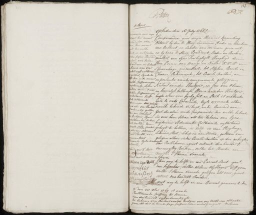 5 Vander Op heden den 16 July 1766 Compareerden voor my Henricus Kamerling Notaris bij den Edele Moogen sauvereine Raden en Leenhove van Brabant en landen van overmaze gecreeert en bij Haar Edel Mooge praesident, naden en reecken¬ meesters van sijne Doorlugtigste Hoogheijd den heere prince van Orange en Nassau en in ’s Gravenhage geadmitteert tot Alphen, Baerle en chaam, resideerende tot Baerle Nassau en „ in presentie van de naergenoemde getuijgen Niclaes van den Houtgert en Jan van Olmen, in houwelijk hebbende Maria van den Houtgert de waarvoor hy 1 post en sterk is makende ende de rato Caveerende, beyde woonende alhier dewelke bekende verkogt, ende enard van hool die al mede Compareerde den welke bekende soo voor hemzelven als ten behoeve van sijne huysvrouw Adriaentie Corstiaense uijtterhand gekogt te hebben de helft in eene Huijsinge schuur, stal, schop en aansteede, gestaen en gelegen alhier onder Baerle Nassau op den gehugten en Bosschoven, groot ontrent driehondert vierenvijftig Roeden, oost het straete en Noorden ’s Heeren vroente Item nog de helft in een parceel lant gen den heijaeker, Ooste Willem Olijslagers effgen Weste, ’s heeren vroente gelegen als voor groot ontrent driehondert roeden, taende het men ende genaemt den actens Compareerde voor my oemd, Jan van taris hier nevens en hier nevens it, denwelke ende en verklaerden den cooper demart t voldaen en betaelt somma van vier guldens synde de Gool aan hem of hem in de nevens ompeteerende, sulcx selve nietwes meer wetendeeren heeft dert vyffentseven me van dies hondert enseventig gulden kentgen syn ƒ maart 1767 present van Kenth, en melde Cooppenningen 1 hand met stelt van Amen liaen van den deselve Cooppenningen de resteerende „ penningen een gelyke een aan niclaes peterende Acten le Nassau den getuijgen Adriaan weren uit naense byde wor¬ aerte laet niet te konnen schryven ens raentjens ameringh te op den 2 xber 1767 is van de Resteerende Cooppenn ter somma van vierhondert vyffenseventig gls ten behoeve van niclaes van de houtgers voor my Nots: een obligatie gemacht dus de tweede lage Coppen daer mede geregeert men