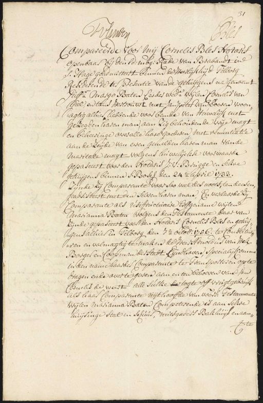zijnde gepasseert voor den Notaris Cornelis Bles en getuij=