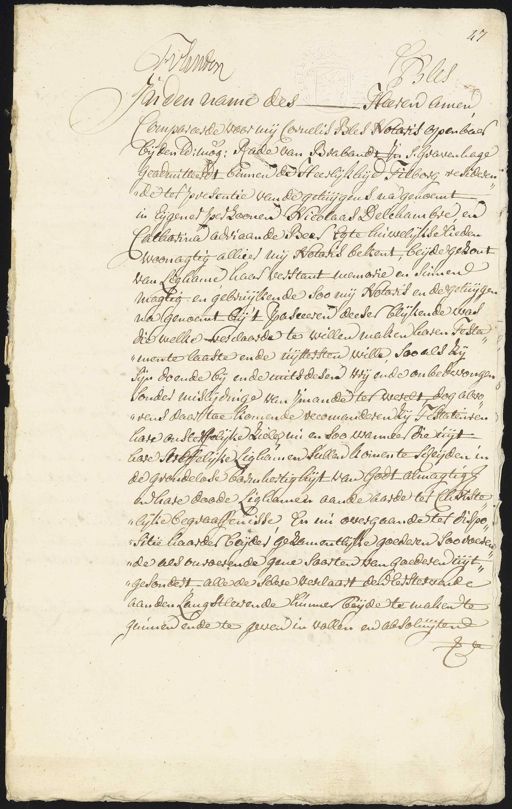 Compareerde voor mij Cornelis Bles Notaris openbaer