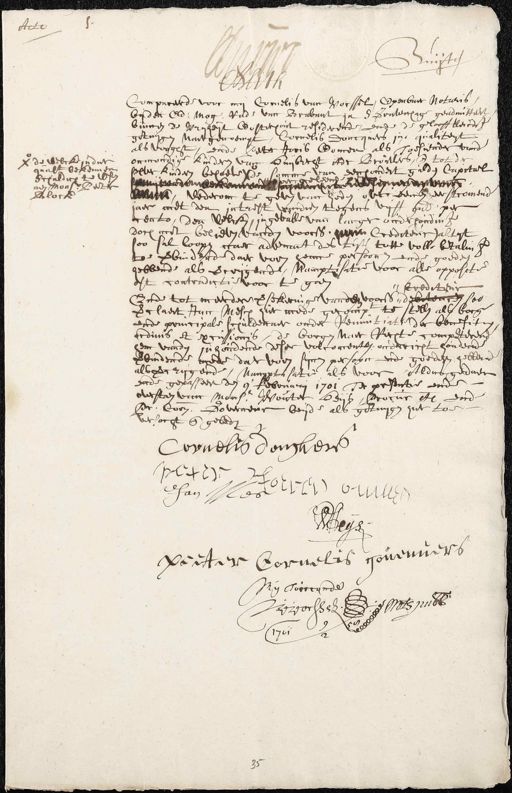 ende gepasseert den 9 februarij 1701 te presentie ende