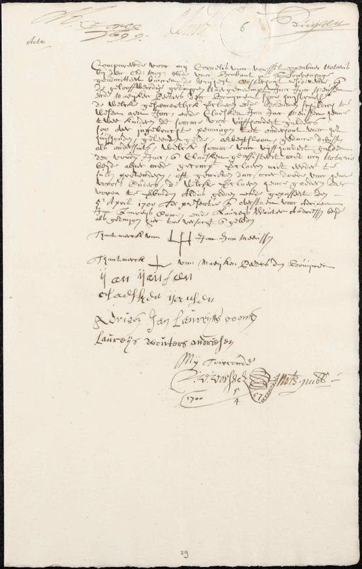 5 April 1700 ter presentie ende overstaen van Adriaen